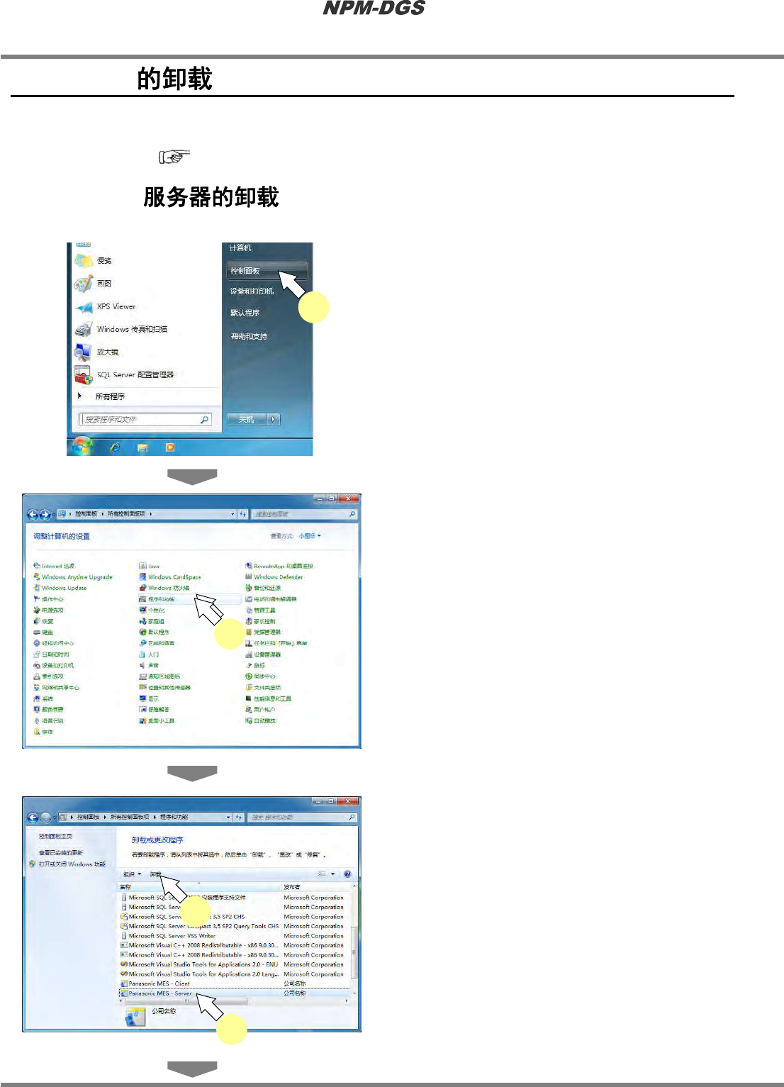 程序手册 2.3DGS 的卸 载 Page2-136 EJS9AC-MB-02P -22 2.3 DGS 在此说明 DGS 应用程序的卸载方法 。 * 如果卸载 DGS ,与 DGS 相关的数据将消失 。如果事后有 可能需要这些数据 ,建议您事先执 行备 份。 ( ‘3.2.2 备份 / 恢复 ’) 2.3.1 DGS 在此说明 DGS 服务器的卸载方法 。 1 打开 [ 开始 ] ®…