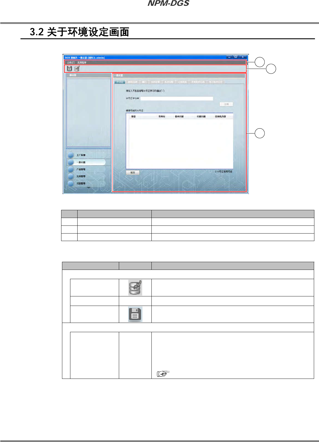 程序手册 3.2 关于环境设定画面 EJS9AC-MB-03P-20 Page3-3 No. 名称 说明 菜单栏 显示各个菜单。 ‚ 工具栏 显示各操作图标。 ƒ 环境设定区域 选择各项目图标,即会显示当前的设 定 。 n 菜单 菜单栏 工具栏 …