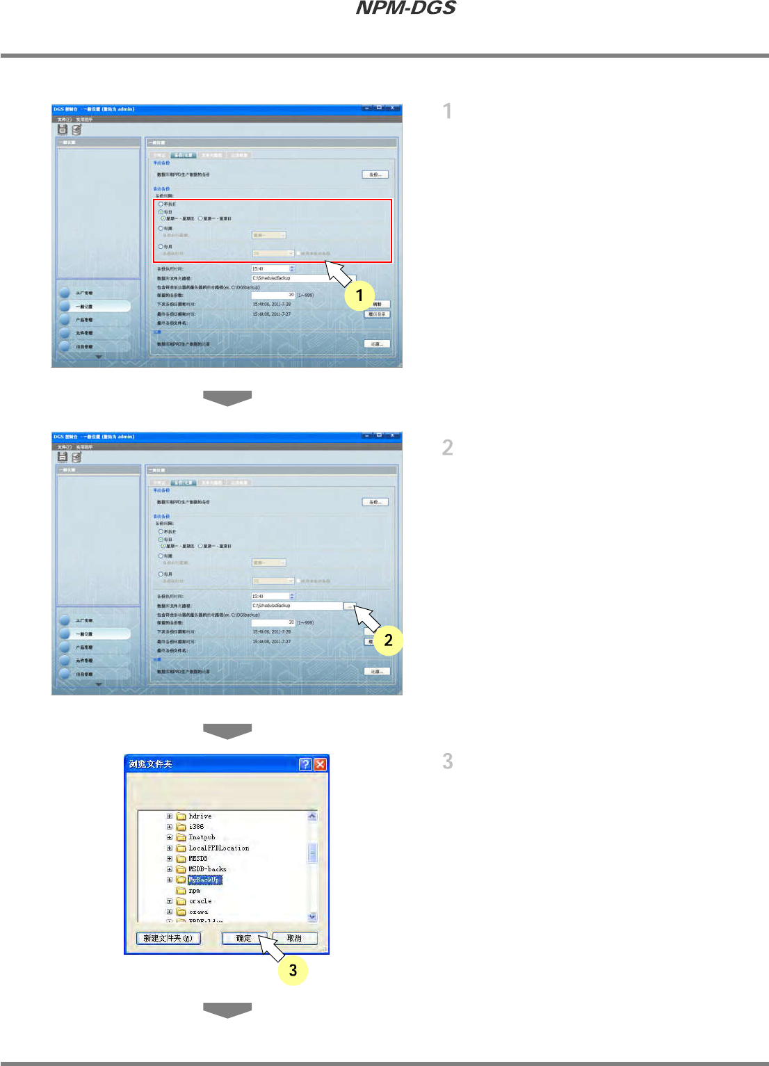 每个月对所输入的日期或通过下拉菜单所指定的日期实施备份。