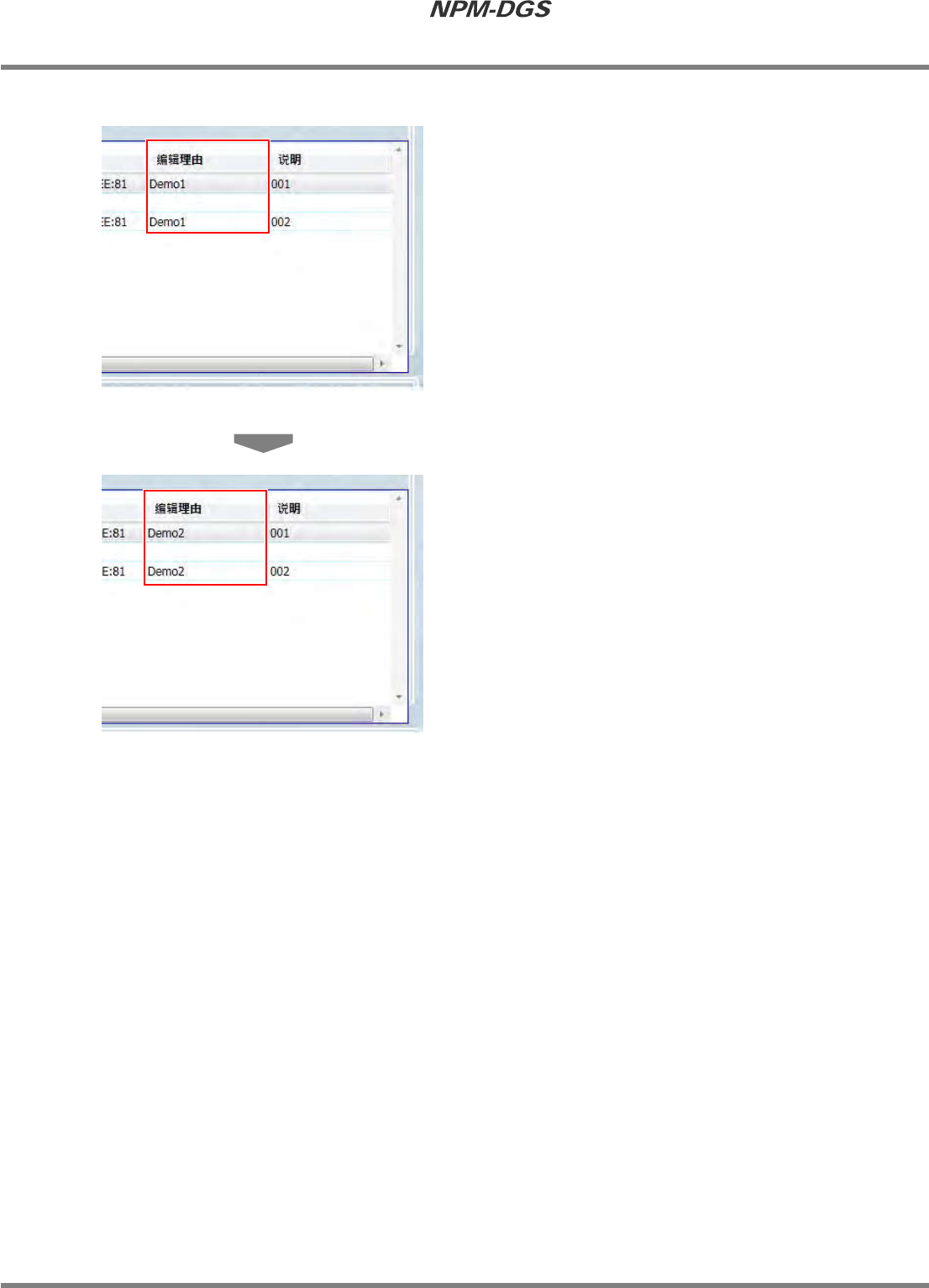 程序手册 3.2 关于环境设定画面 Page3-46 EJS9AC-MB-03P-20 n 编辑理由的删除 从一览中选择编辑理由后, 点击 [ 删除 ] 。 · 将显示 < 删除确认 > 画面。 点击 [ 确认 ] 。 当想要删除的编辑理由 被用于操作纪录时, 请替 换到其他的编辑理由。 …