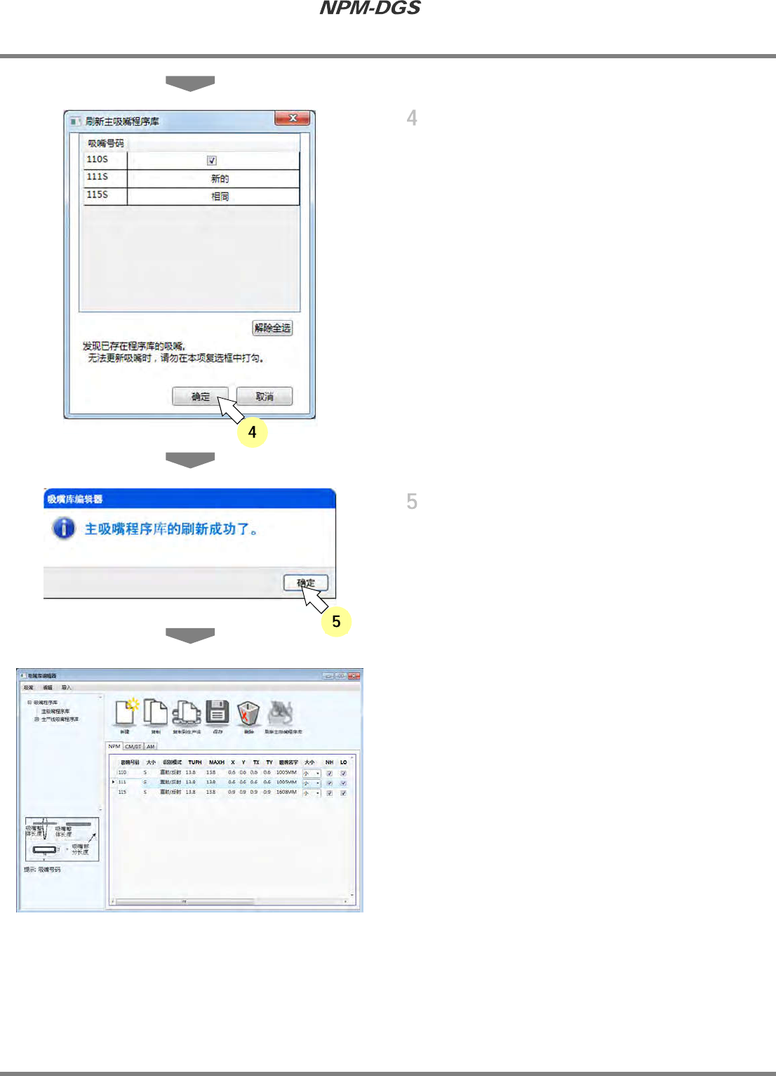 确认需要更新的吸嘴后,点击