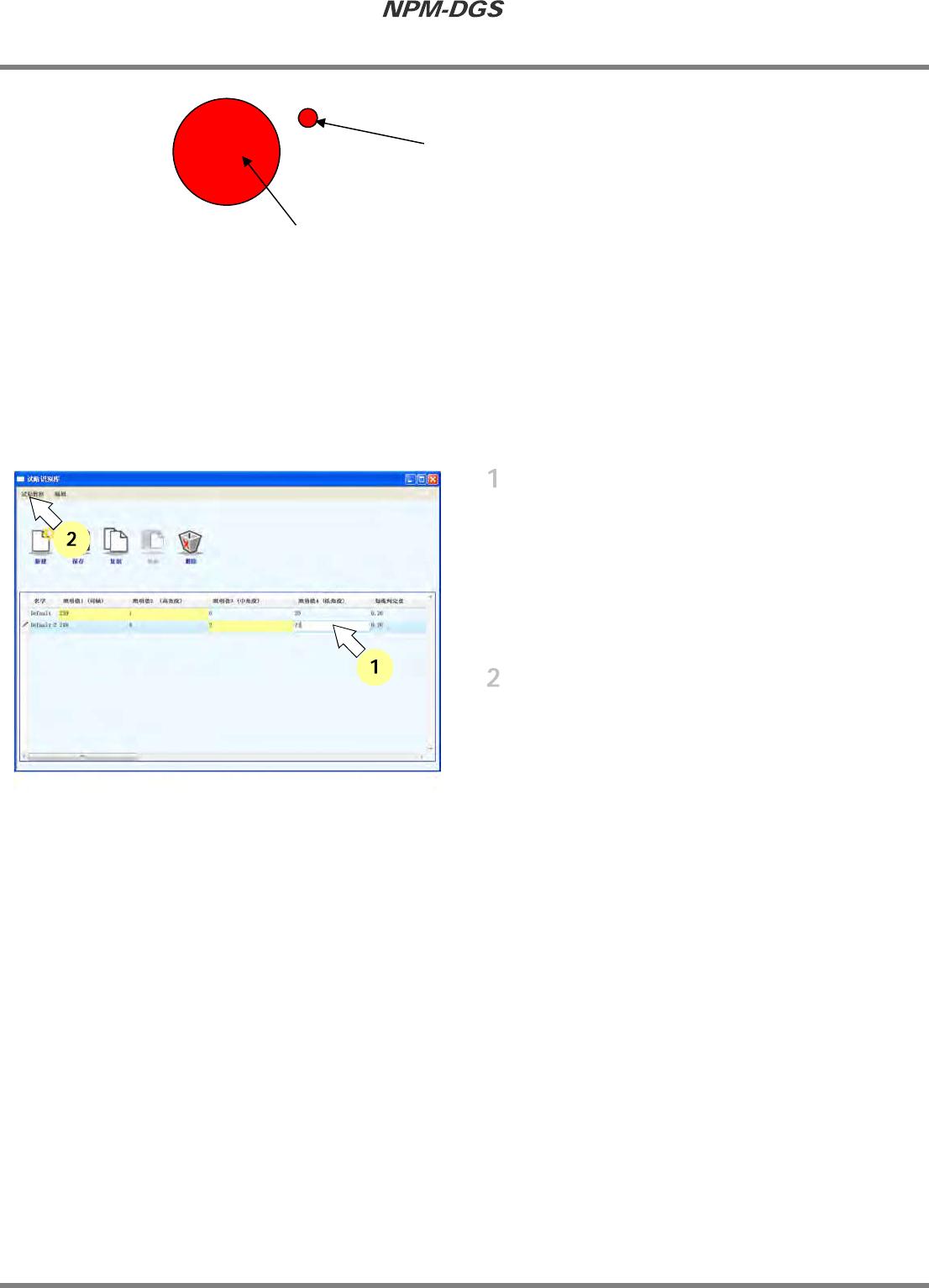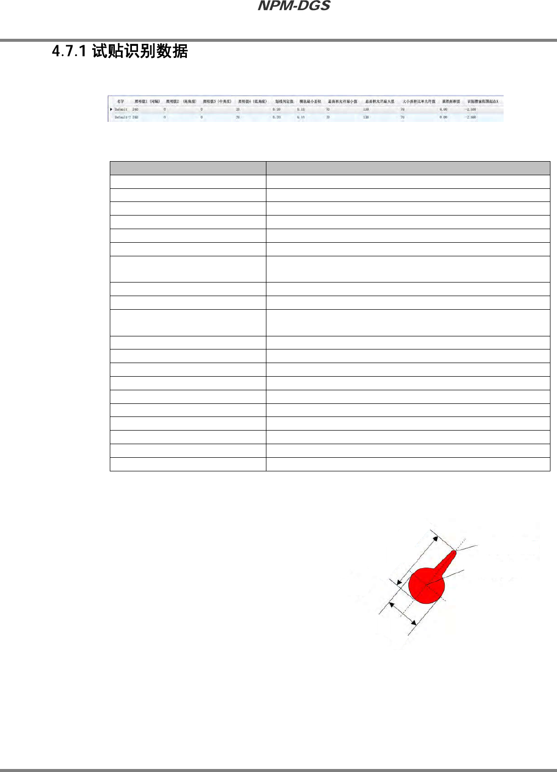 程序手册 4.7 试贴识别库编辑器 Page4-96 EJS 9AC-MB-04P- 40 图 2 * 模块的最小直径,请设 定为在识别被试贴的材料 ( 粘合剂 ) 时作为有效的点胶模块 而进行判断的 最小直径。 n 变更试贴数据 点击需要变更项目的工作格来变更数 据。 * 如果变更标准试贴数据 ,所变更的工作格的背 景…