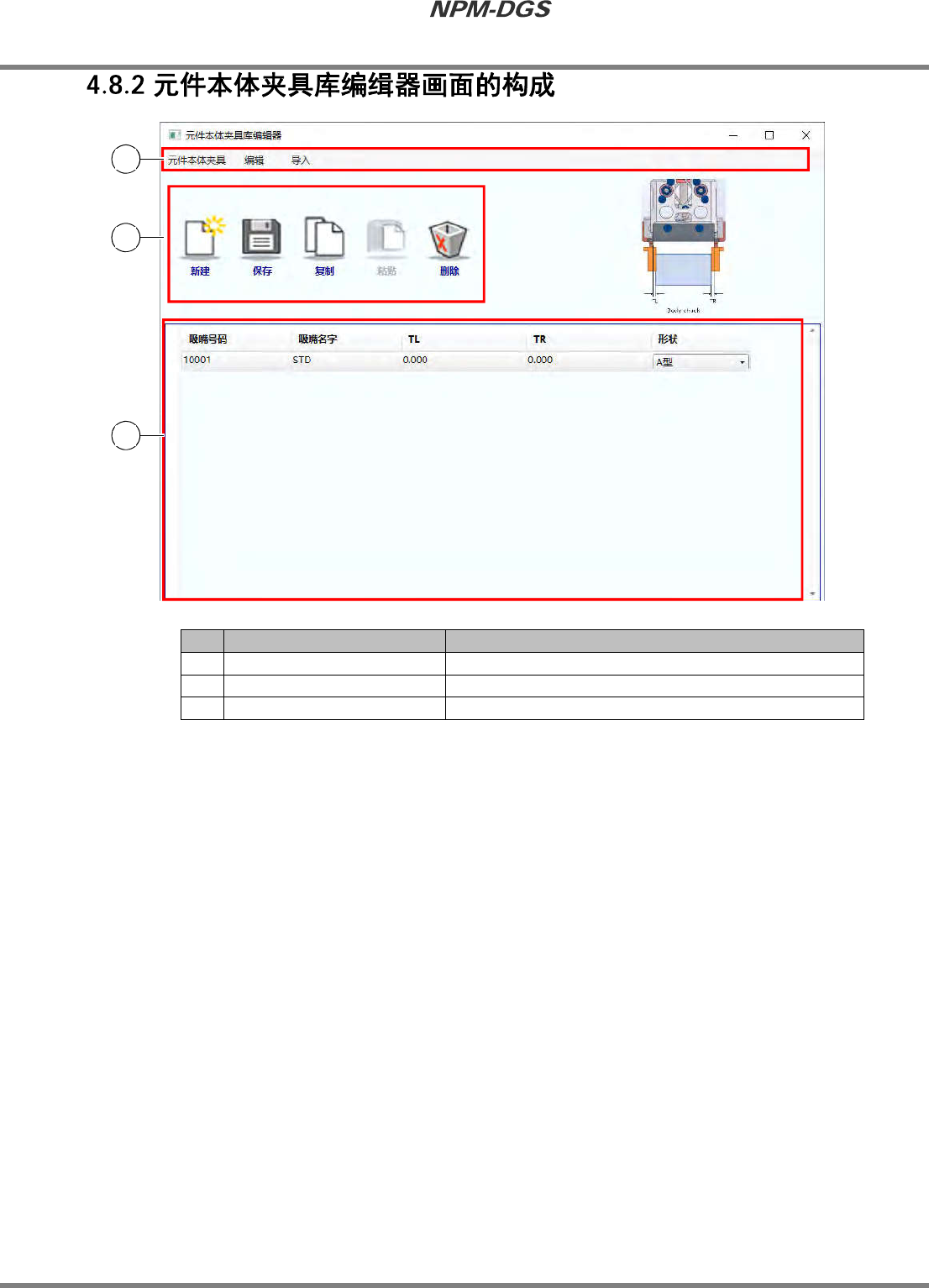 所谓的元件本体夹具库编辑器,是指对在插入头上使用的元件本体夹具的基本数据进行管理的编