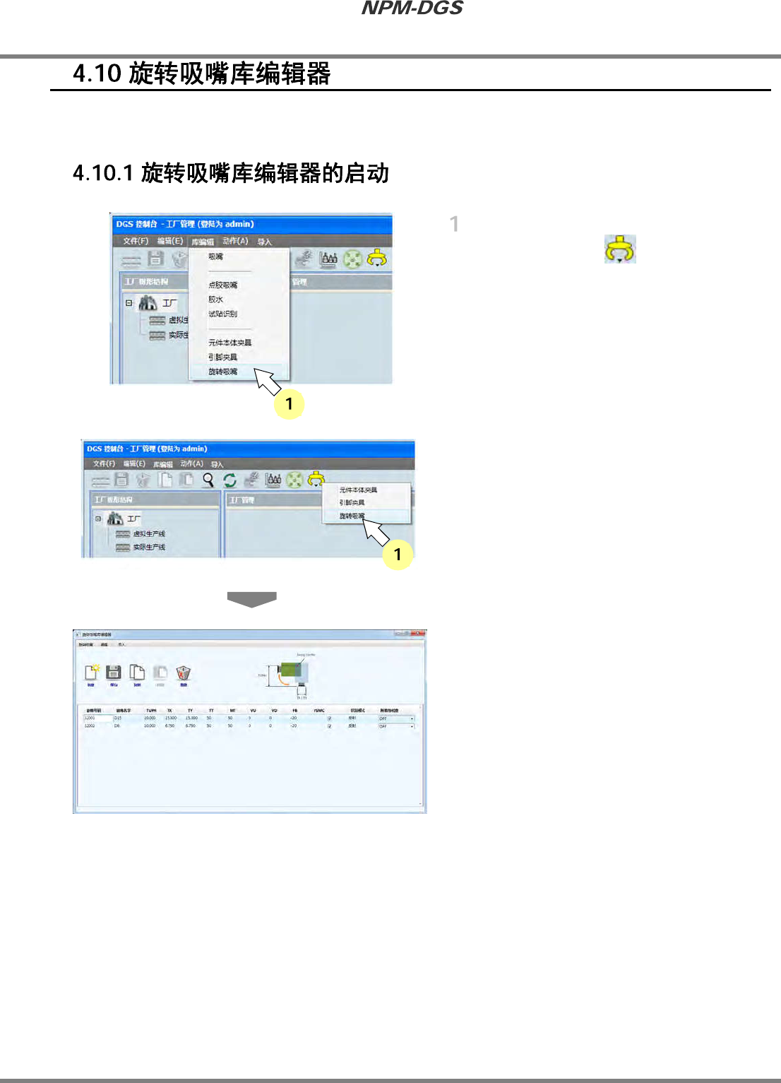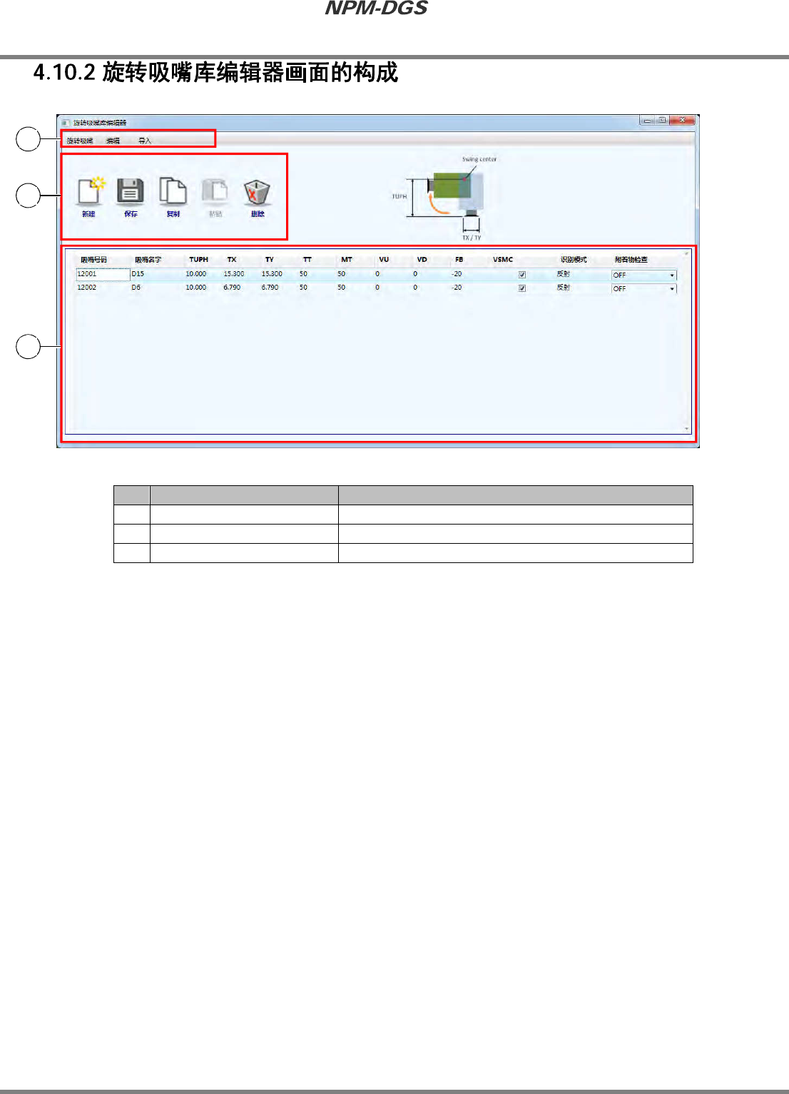 所谓的旋转吸嘴库编辑器,是指对在插入头上使用的旋转吸嘴的基本数据进行管理的编辑器。