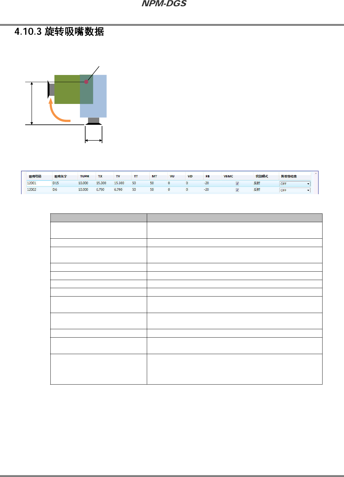 在这里对旋转吸嘴数据的详细内容进行说明。