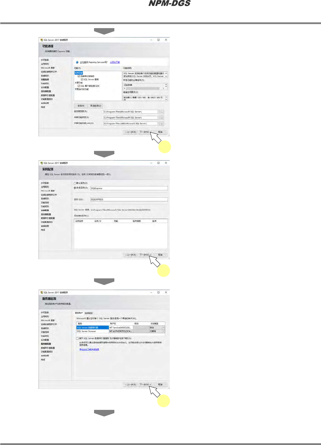 程序手册 2.1NPM-DG S 的安装 Page2-22 EJS9AC-MB-02P -22 11 选择 ‘ 混合模式 (S QLServer 身份验 证和 Windows 身份验证 )’ 后,输入任 意的密码。 12 点击 [ 下一步 ] 。 13 点击 [ 关闭 ] 。 …