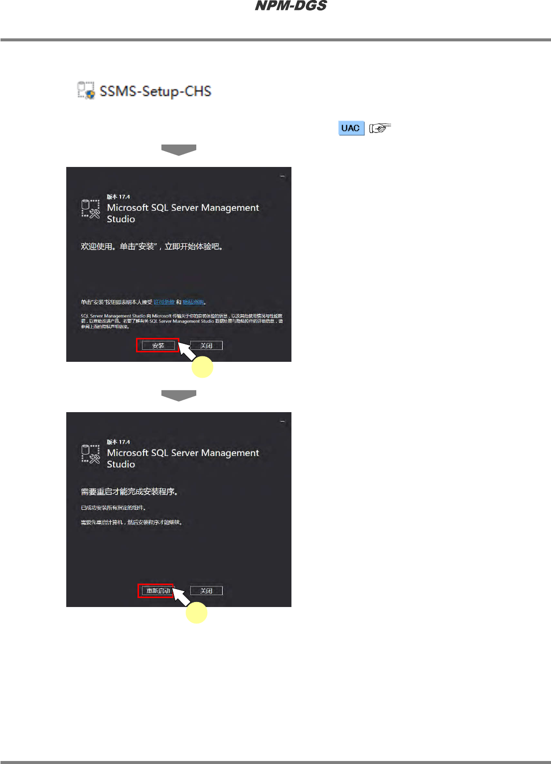 程序手册 2.1NPM-DG S 的安装 EJS9AC-MB-02P -22 Pag e2-23 n MicrosoftSQLServer Manage mentStu d io 的安装 1 启动 ‘MicrosoftSQLServer ManagementStudio‘ 的安装程序。 ( ‘1.3.1 关于用 户帐户控制 ’) 2 点…