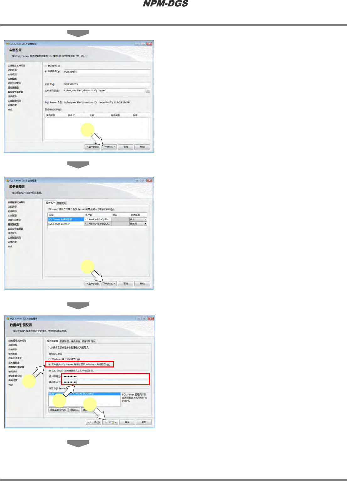 程序手册 2.1NPM-DG S 的安装 Page2-38 EJS9AC-MB-02P -22 6 点击 [ 下一步 ] 。 7 点击 [ 下一步 ] 。 8 选择 ‘ 混合模式 (S QLServer 身份验 证和 Windows 身份验证 )’ …