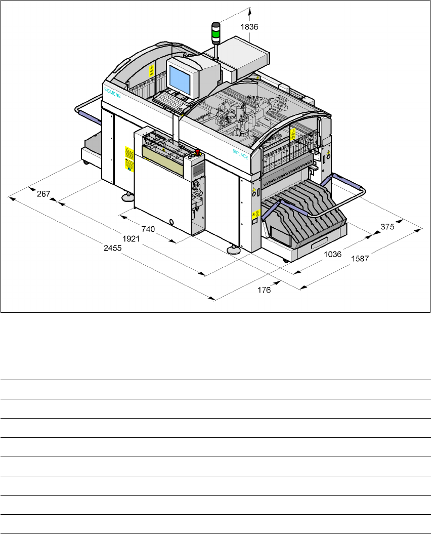 Üzemelteté si útmutat ó SIPLACE F 5 HM 3 M ű szaki adat ok Software-verzió: S R.408.xx K iadás: 03/2006 HU 3.6 Az automat a méretei és súlya 77 3.6 Az automata méretei és súlya 3.6.1 Automata mére tei alkatr észkocsiva l…