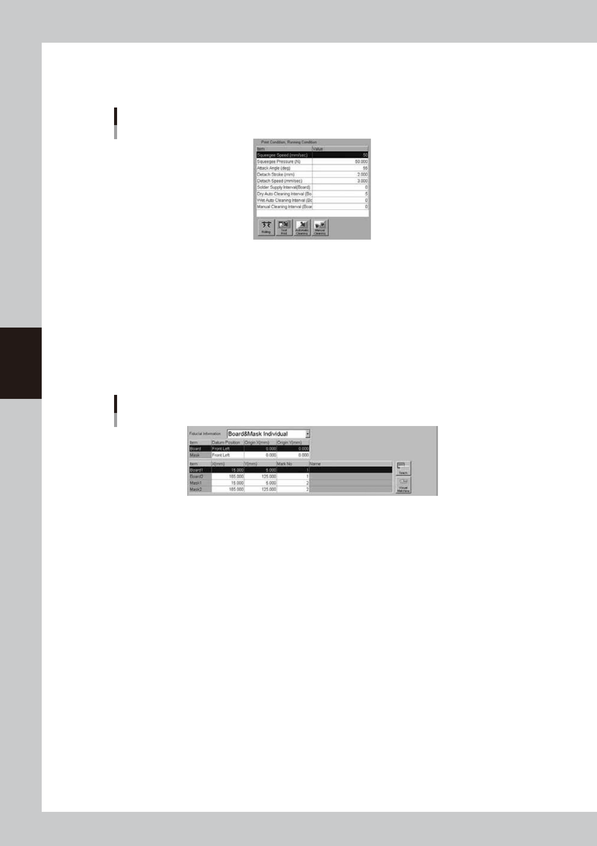 4-5 4 Creating and setting the data 3. Board data setting The following parameter items can be checked and edited on the [Print]-[Board] tab. 3.1 Board marks and parameter setting [Print]-[Board] tab [Edit] button 1 4 5 …