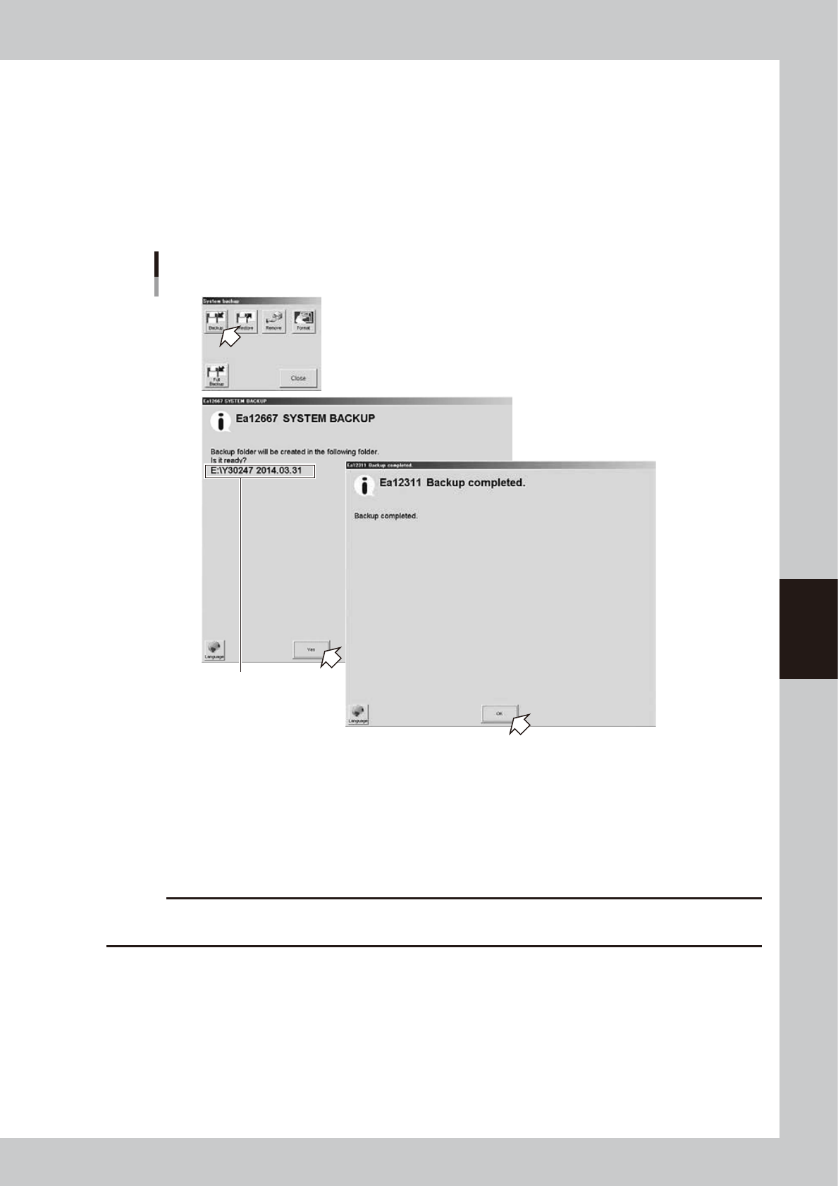 3. Another message appears when system backup is complete. Press the [OK] button to close the