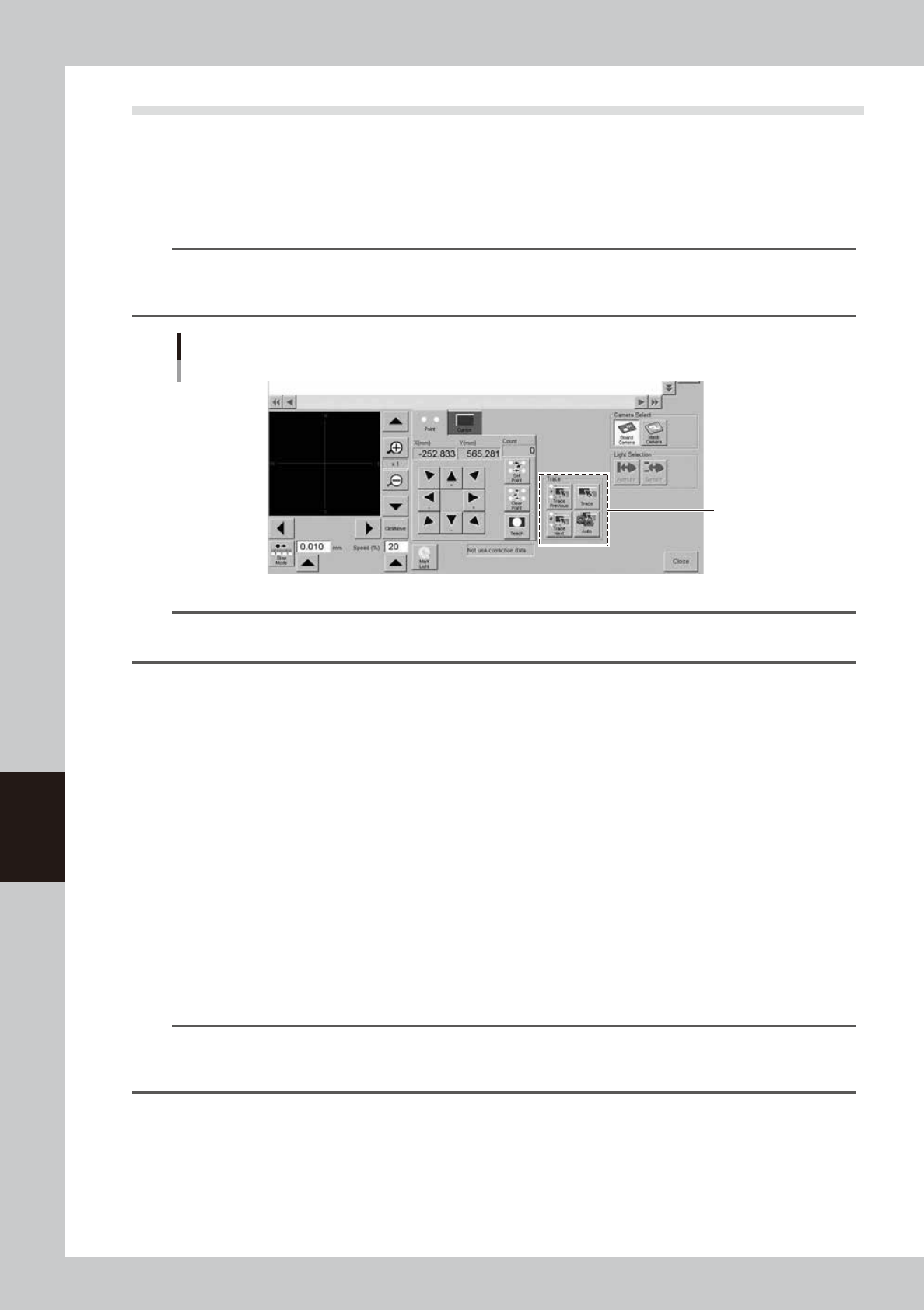 Visual checks can easily be made using the [Trace Previous], [Trace Next] or [Auto] buttons if inspection coordinates