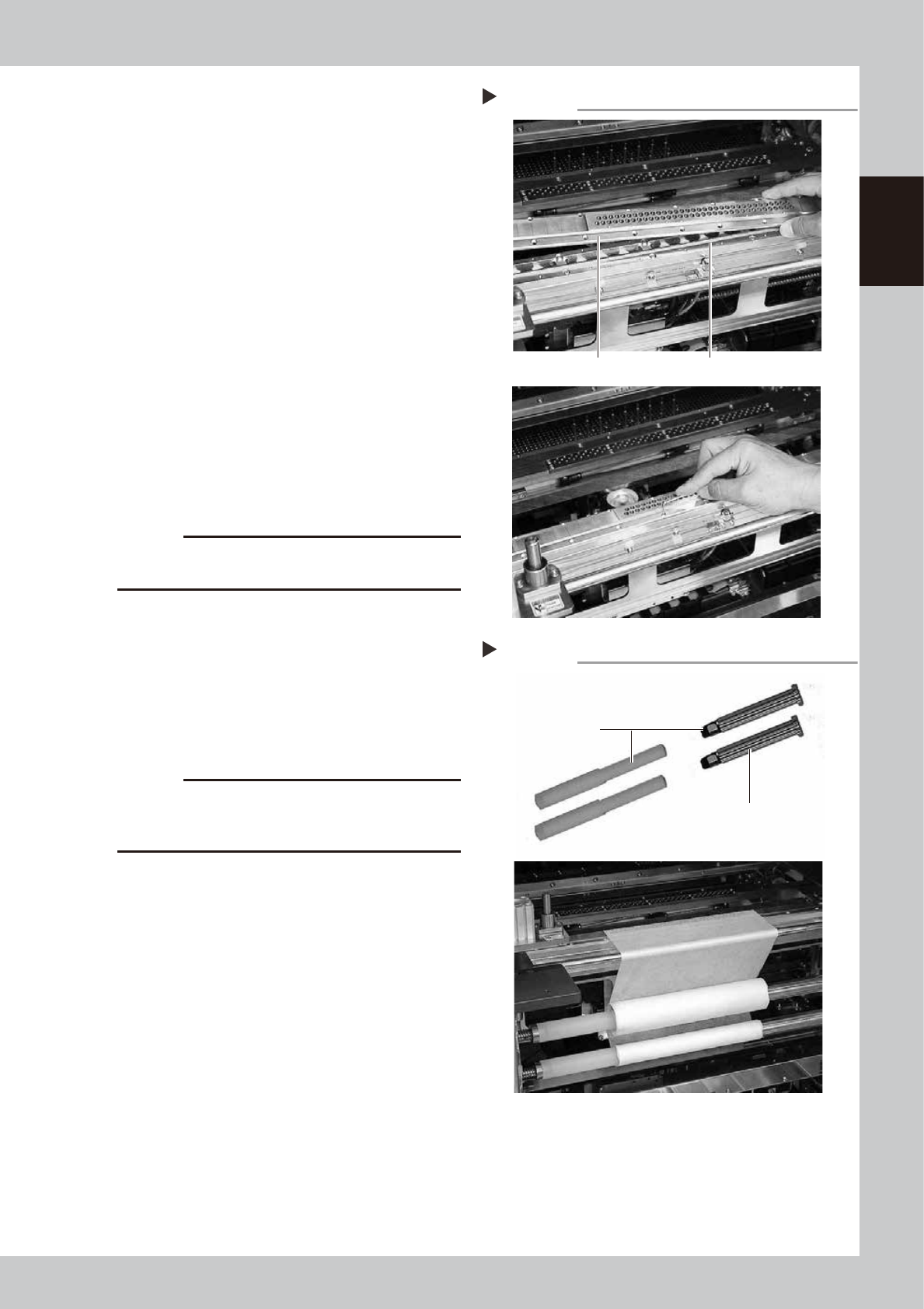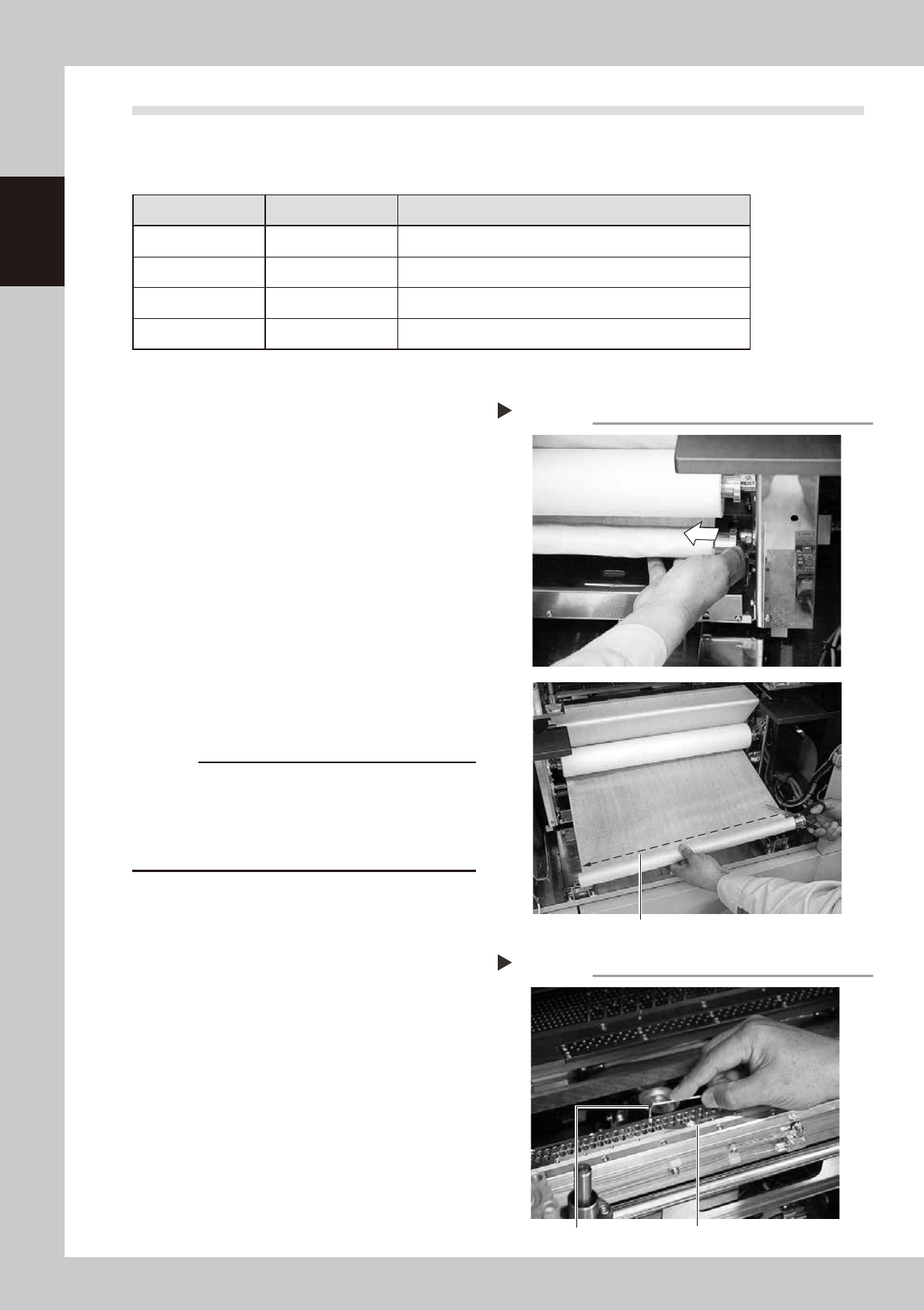 7-8 7 Replacing the consumable parts 3.2 Changing the roll size If the roll size needs to be changed during the setup w ork, it is necessary to use a special cleaner width change unit (option). n Cleaner width change uni…