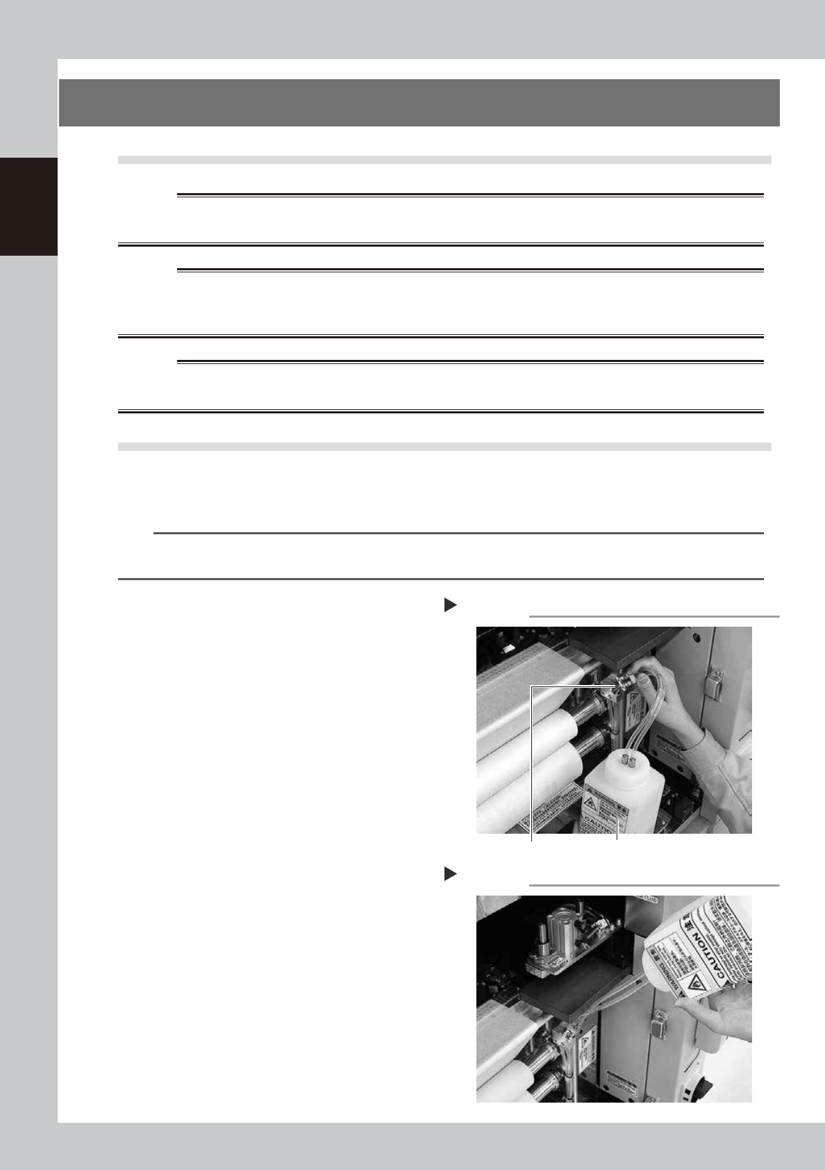 Before beginning work, fill up the solvent refilling bottle to make it easier to refill the solvent. Also make sure the bottle