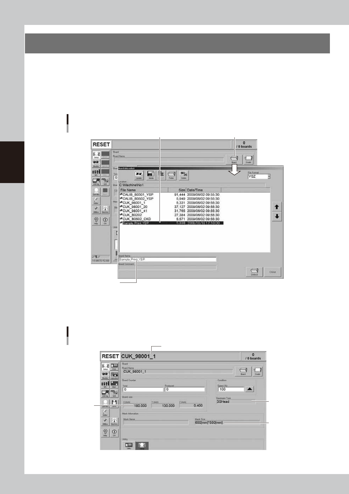 2. Line up the cursor with the board data to be produced and press the [OK] button.