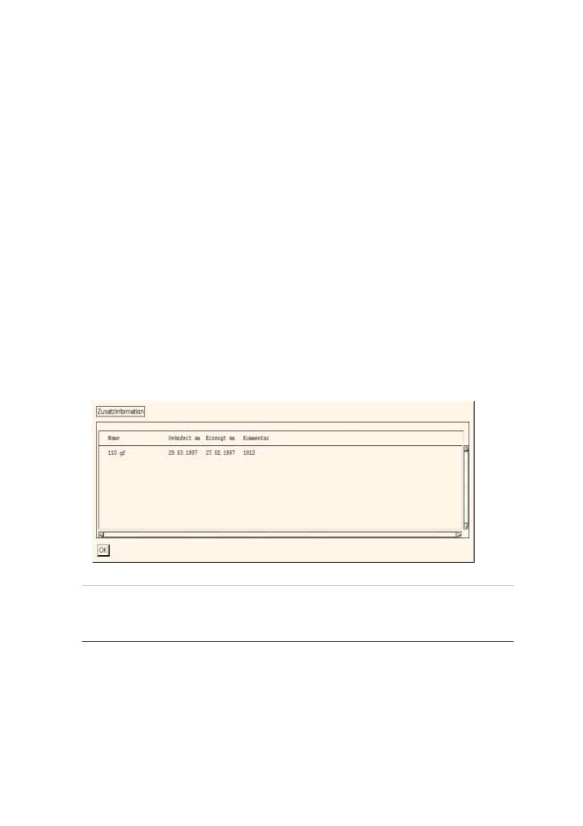 in welcher der in der Zusatzinformation enthaltene Kommentar komplett angezeigt wird.
