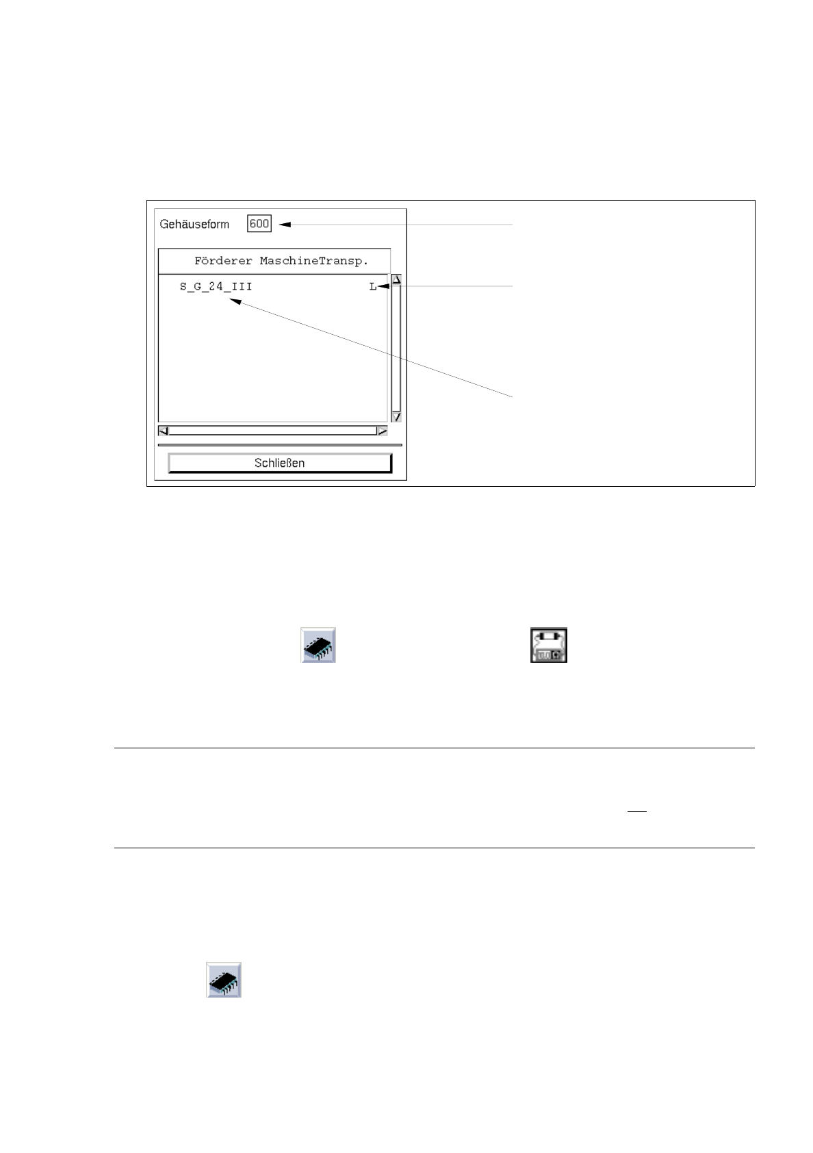 Dieser Bereich enthält die Ikonen (Symbol für Gehäuseform) und (Symbol für Bauelement), mit