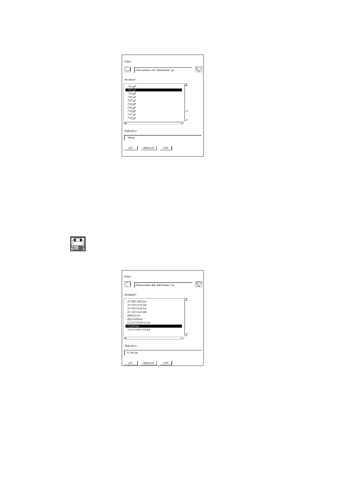 Die FSB mit der Dateiauswahl aller bereits definierten Bauelemente wird geöffnet: