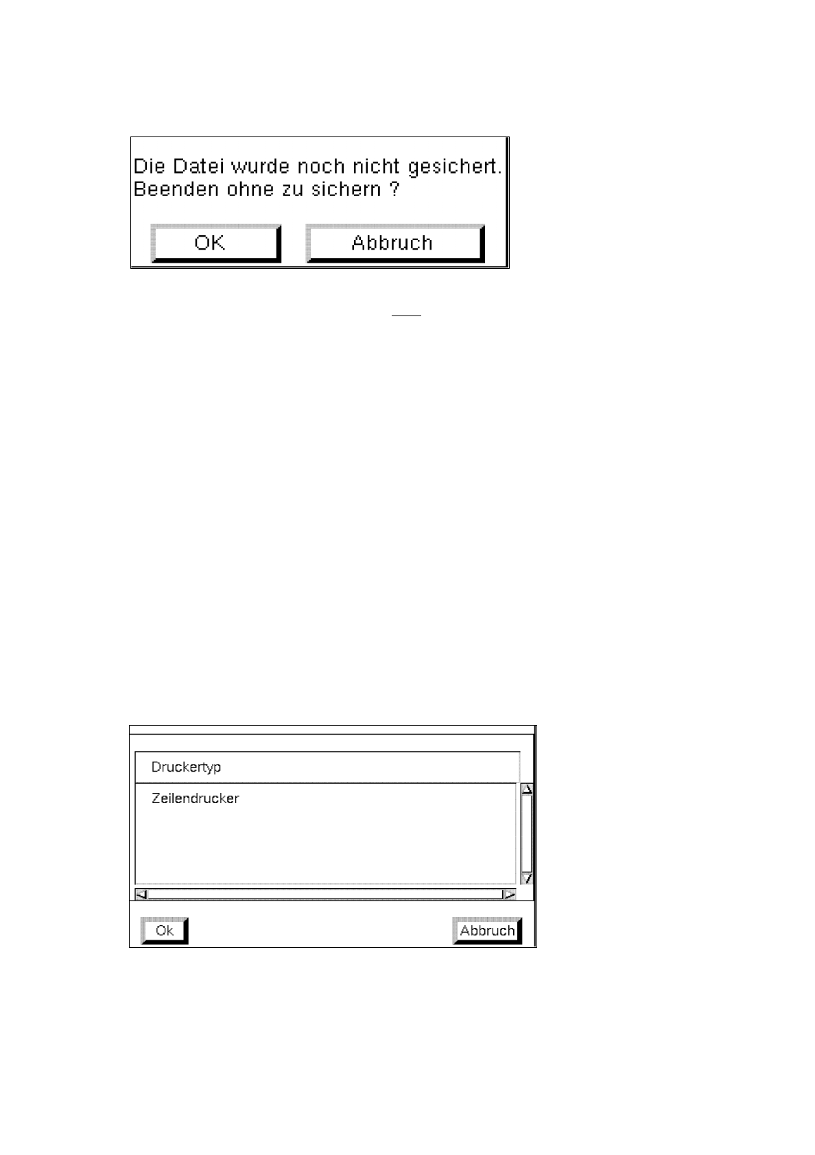 2 Allgemeine Programmbedienung Betriebsanleitung Linienrechner U NIX 2.5 Menüzeile im Anwendungsfenster Software-Version 403.xx Ausgabe 06/97 2 - 28 ● OK ankli ck en, wenn die g eänder ten Daten nic ht gesiche r t we rde…