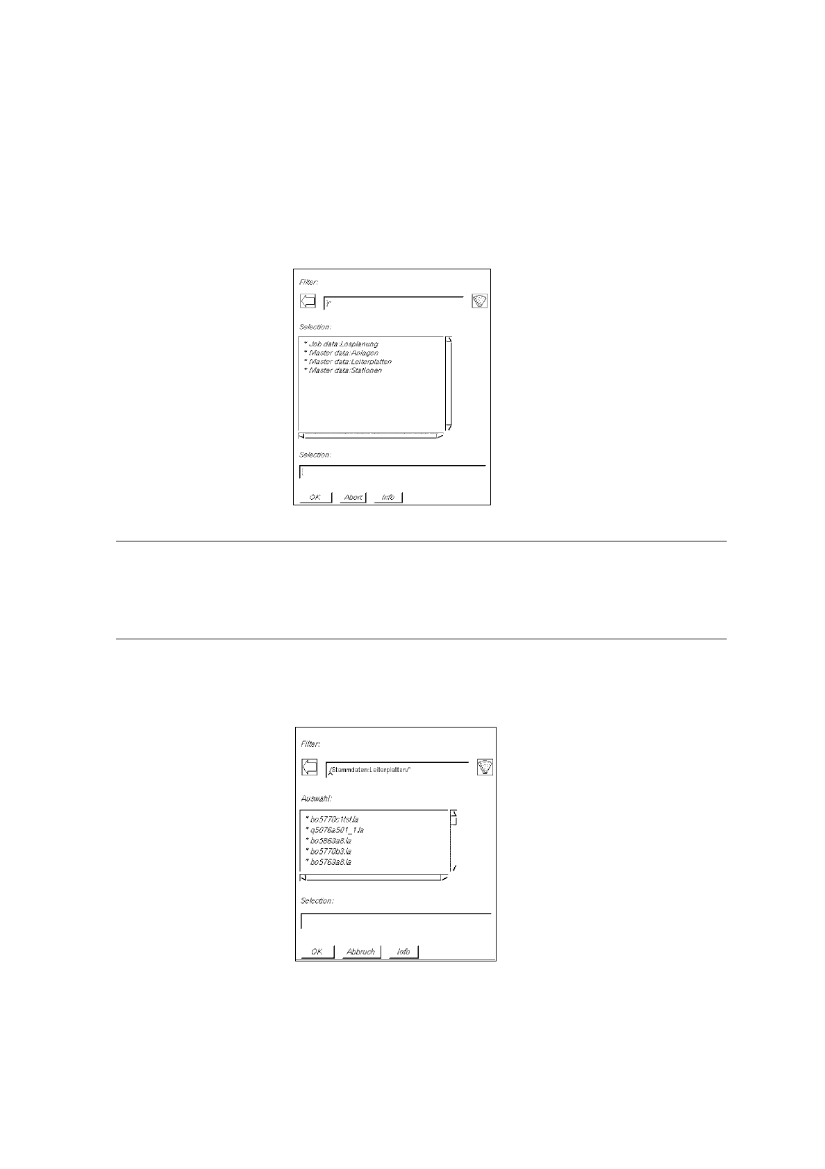 Die im Verzeichnis enthaltenen Leiterplatten werden angezeigt.