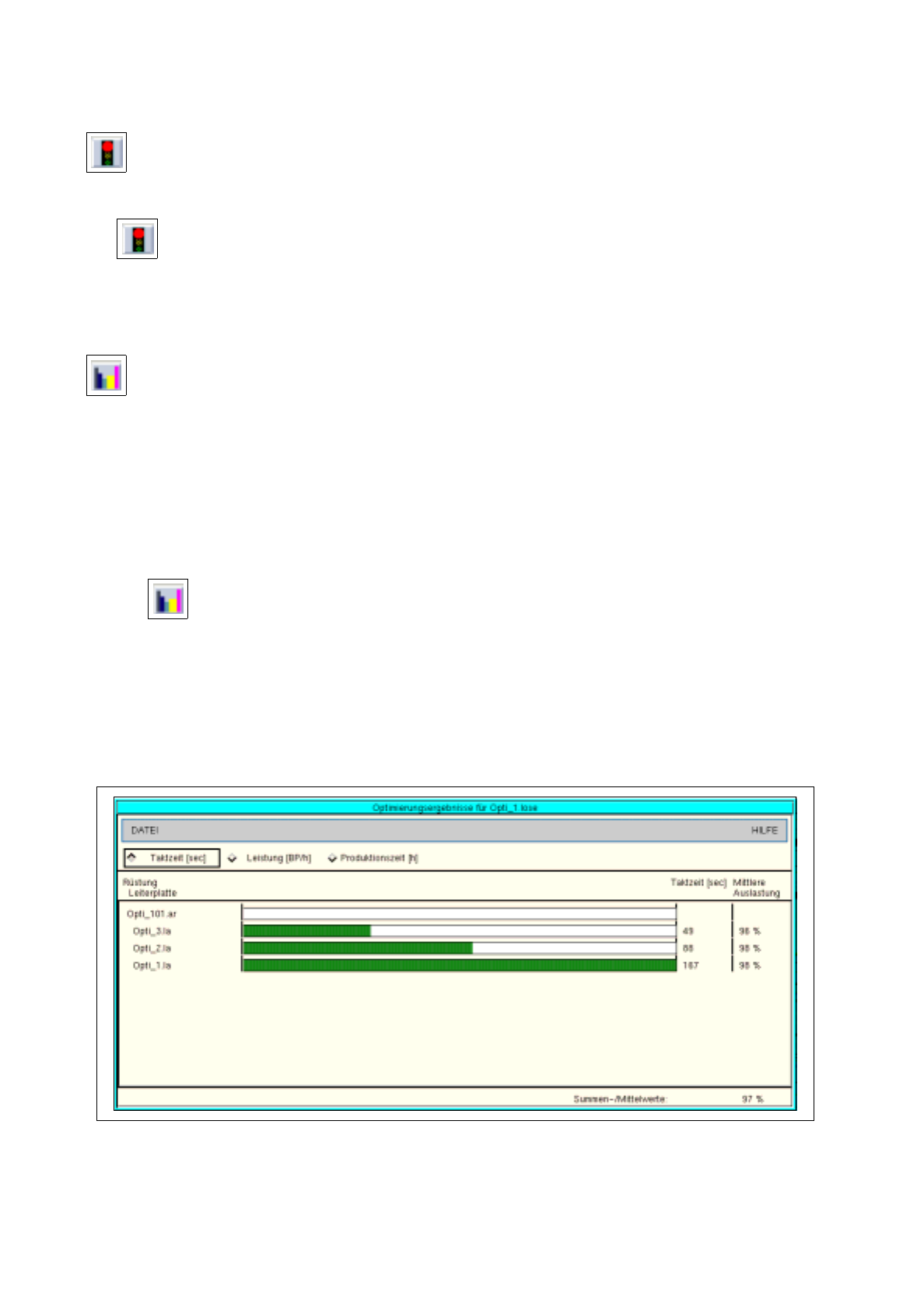 Mit dieser Ikone können die Ergebnisse der Rüstoptimierung für die gesamte Losdatei sowie die einzelnen