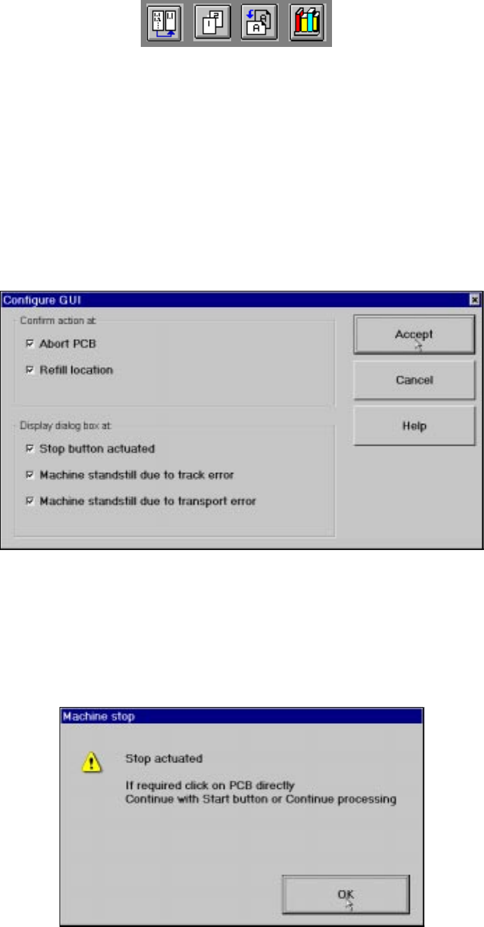 Example: If the stop button is activated and the "Stop button actuated" box is checked,