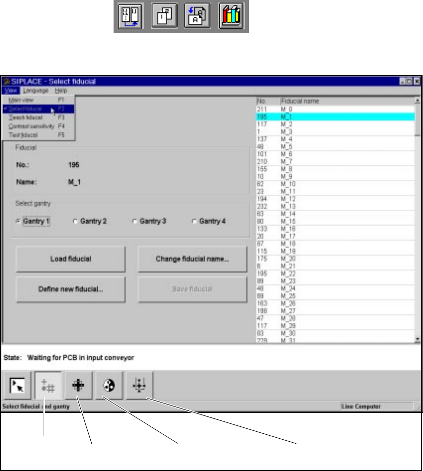 Å Click on either of the two icons (buttons). The screen will then display either the Select fiducial