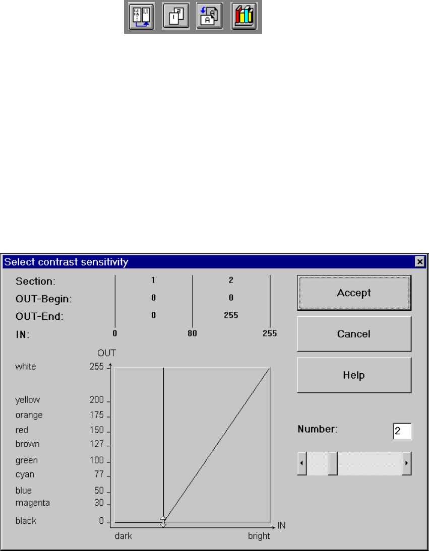 6 Vision functions User M anual HS-50 6.6 Test Component Software V ersion SR.501.xx 12/99 Issue U S 284 t I I t Notes on using the t ransformation tab les to set the contr ast sensiti vity 6 – Se lect u p to 3 sec tions…
