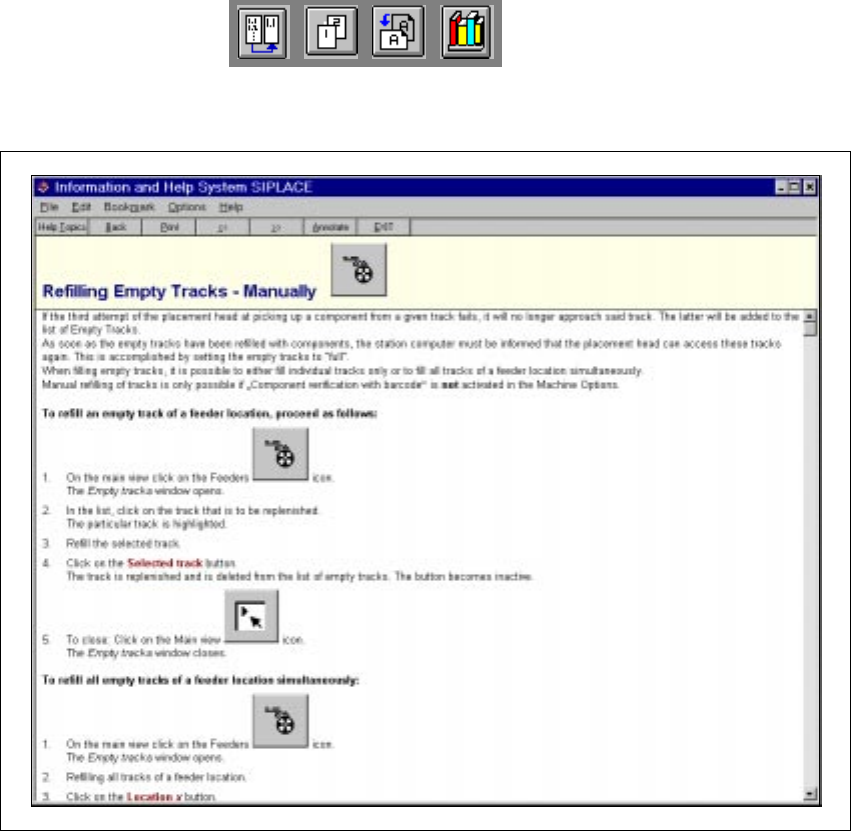 9 Online Help System User Manual HS-50 9.1 General Software Version SR.501.xx 12/99 Issue U S 356 t I I t 9.1.1.4 Calling help on use of the Windows help syste m Å In th e Help me nu, clic k the Help About Help item. The…