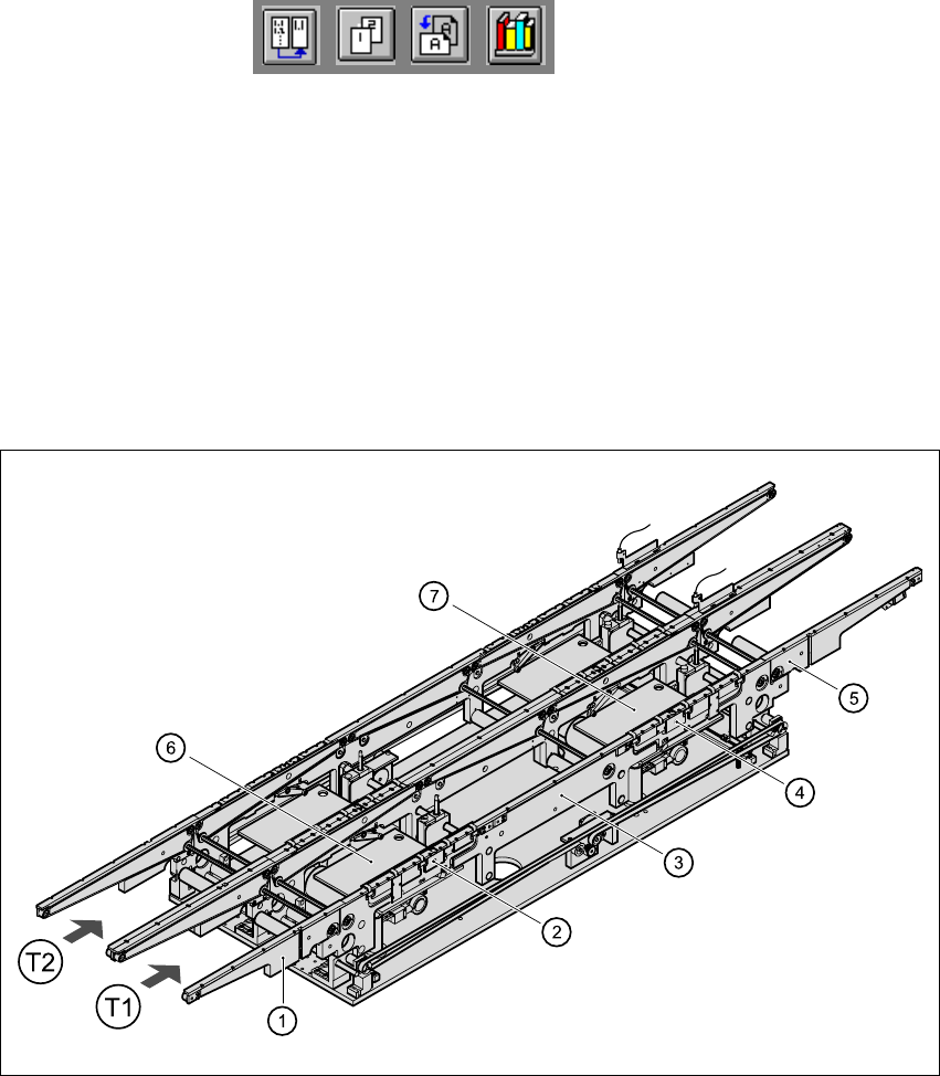 (7) Lifting table, processing area 2 T1 Transport track 1 11