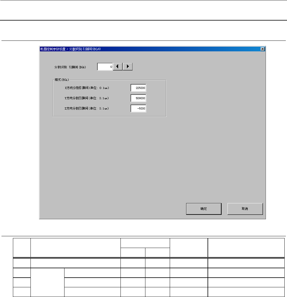 机器控制参数 2- 67 2-4-6 MN VC 主要数据 2-4-6-1 设定项目 No. 项目 输入范围 单位 备考 最小值 最大值 1 数据有效 / 无效 0 1 0 : 无效 1 :有效(默 认) ※ 2 可分配给相邻吸嘴的最大 长边尺 寸 mm 3 MNV C 尺 寸扩展 MNVC 尺寸扩展专 用 吸嘴编号 4 非可见吸嘴判断阈值 ※ 在“数据有效 / 无效”选择了“无 效”后,以后的 项目不能编辑。