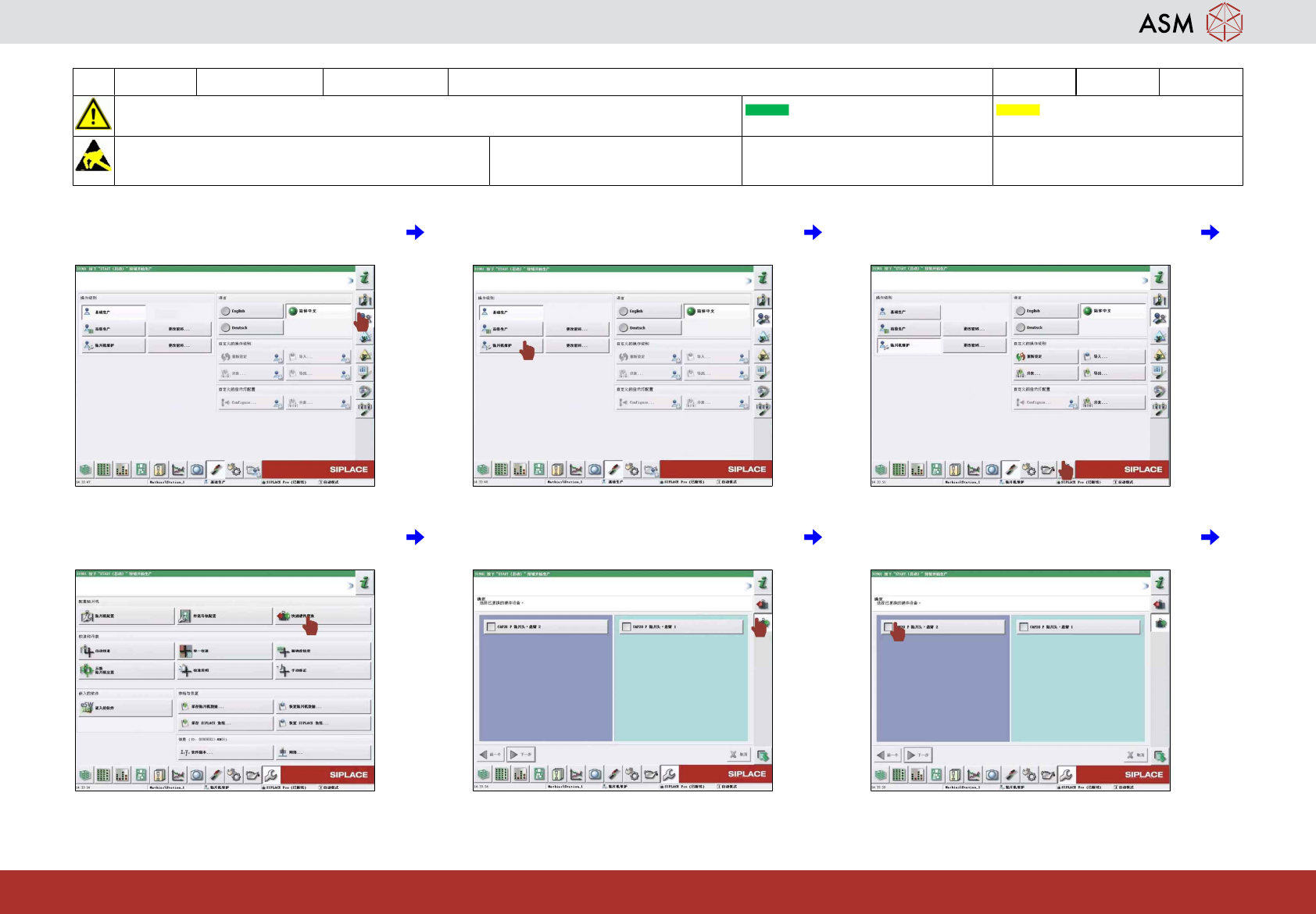 14 WF 2 TX 系列 维护 校准 C&P20 P 14分钟 2 / 4 注 意 开 始 维 护 前 , 请 参 阅 用 户 手 册 中 的 安 全 说 明 贴片机状态开启 传送导轨空 注意!遵守防静电守则 工具: T2、T4 易损件: 耗材: www.asm-smt.com 7 点击“User Settings(用户设置)”图标。 8 点击“Machine Service(贴片机服务)”图 标。 9 点击“Calibr…