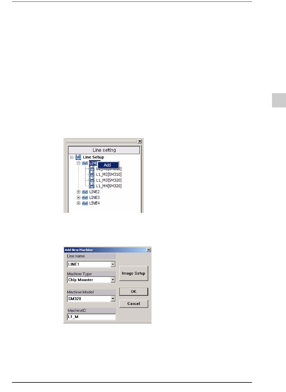 STEP1. 利用鼠标右键单击Line Setup的特定作业线后单击Add。