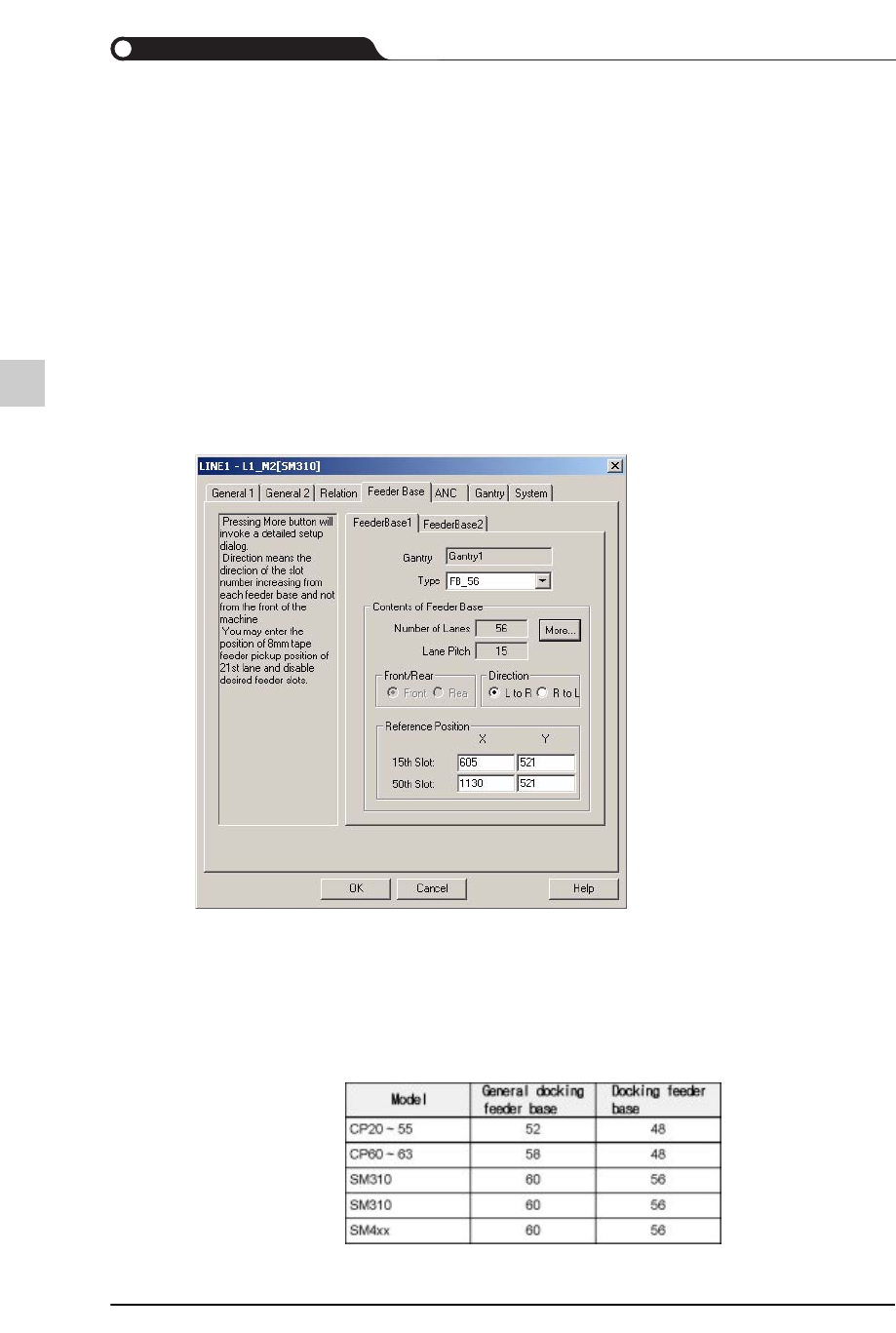 8-10 lvswG}] lvswG}] 各栏的说明如下。 8.4.4. Machine Details – Feeder Base 在 “ 设备设置 ” 对话框单击 Feeder Base 选项卡, 将出现下列栏目。 各栏的说明如下。 Section Offset 是左区 (section) 的 Home 与右区的 Home 之间的距离, 表示区域之间的 距离。 Usable Feeder Bases 设备上安装的喂料器全…
