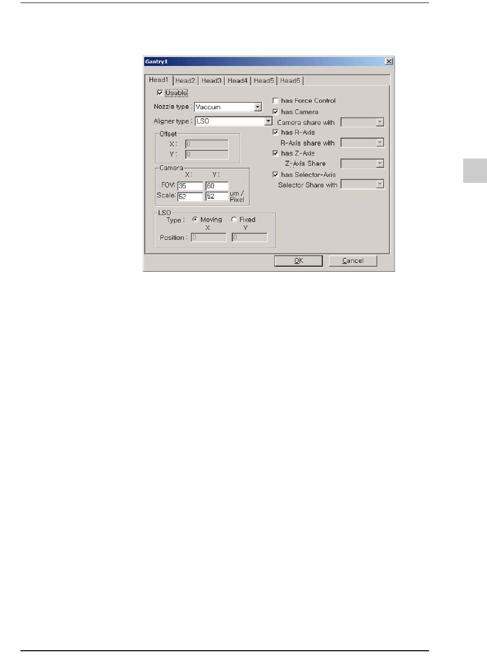单击Head Status群组的<More...>键,将弹出下列Gantry对话框。