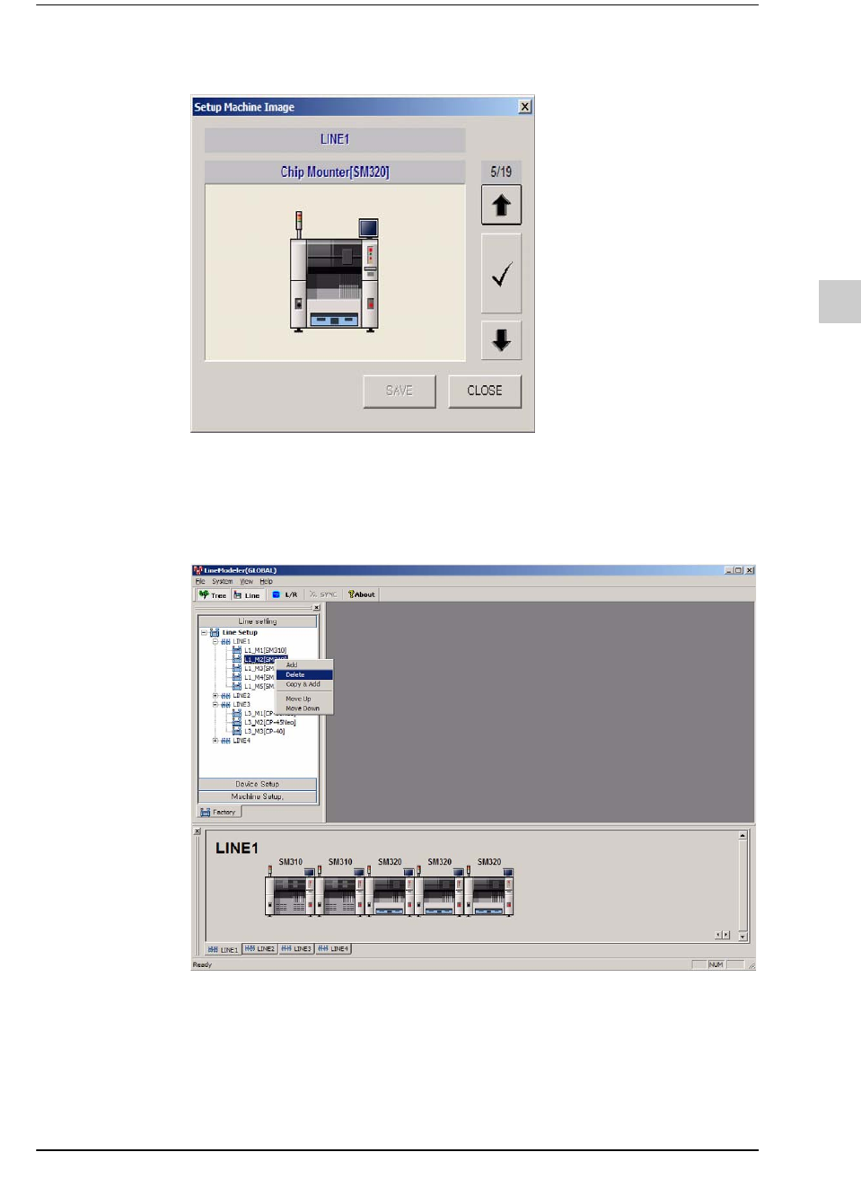 8-28 lvswG}] lvswG}] STEP2. 将弹出询问窗口。 STEP3. 单击 <OK> 键即可删除特定设备。 8.5.3. 设备的复制及添加 STEP1. 使用者可以复制特定设备的 “ 设置 ” 后在同一 “ 设备设置 ” 上添加新设备。 新 添加的设备和特定设备拥有相同的 内容。 使用者可以在作业线配置选项卡上 单击鼠标右键复制作业线内一切设 备 后再添加。