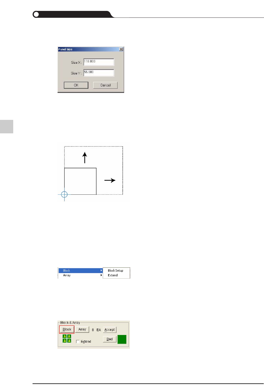 9-65 EasyOLP 其详细内容如下。 9.6.2.2. Extend 区块的扩展 (Exten d) 与解除扩展 (UnExtend) 和阵列是同一个概念。 Use 区块的使用与否 Block 从第一个区块到各区块的偏置值 Set Block 从第一个区块到各区块的偏置值 Number 区块数量 (X 或 Y 方向的数量 ) Count Directio n 区块分度 (Ind ex) 步骤 Offset 区块之间的间隔 Bloc…