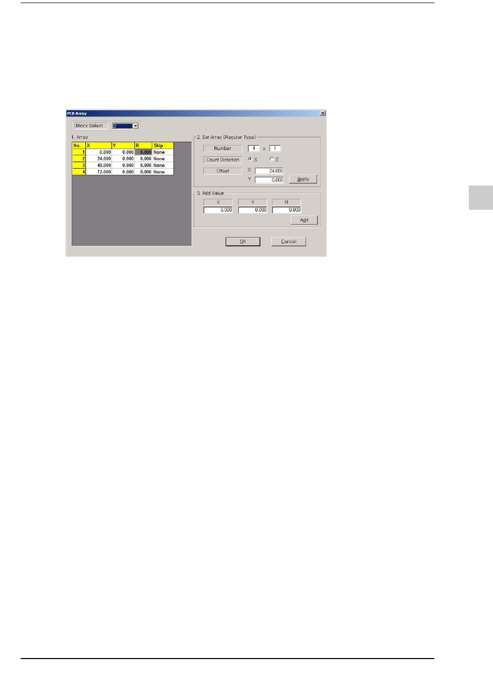 以批次方式更改左侧屏幕的Array区设定值时使用。选择了Array区中