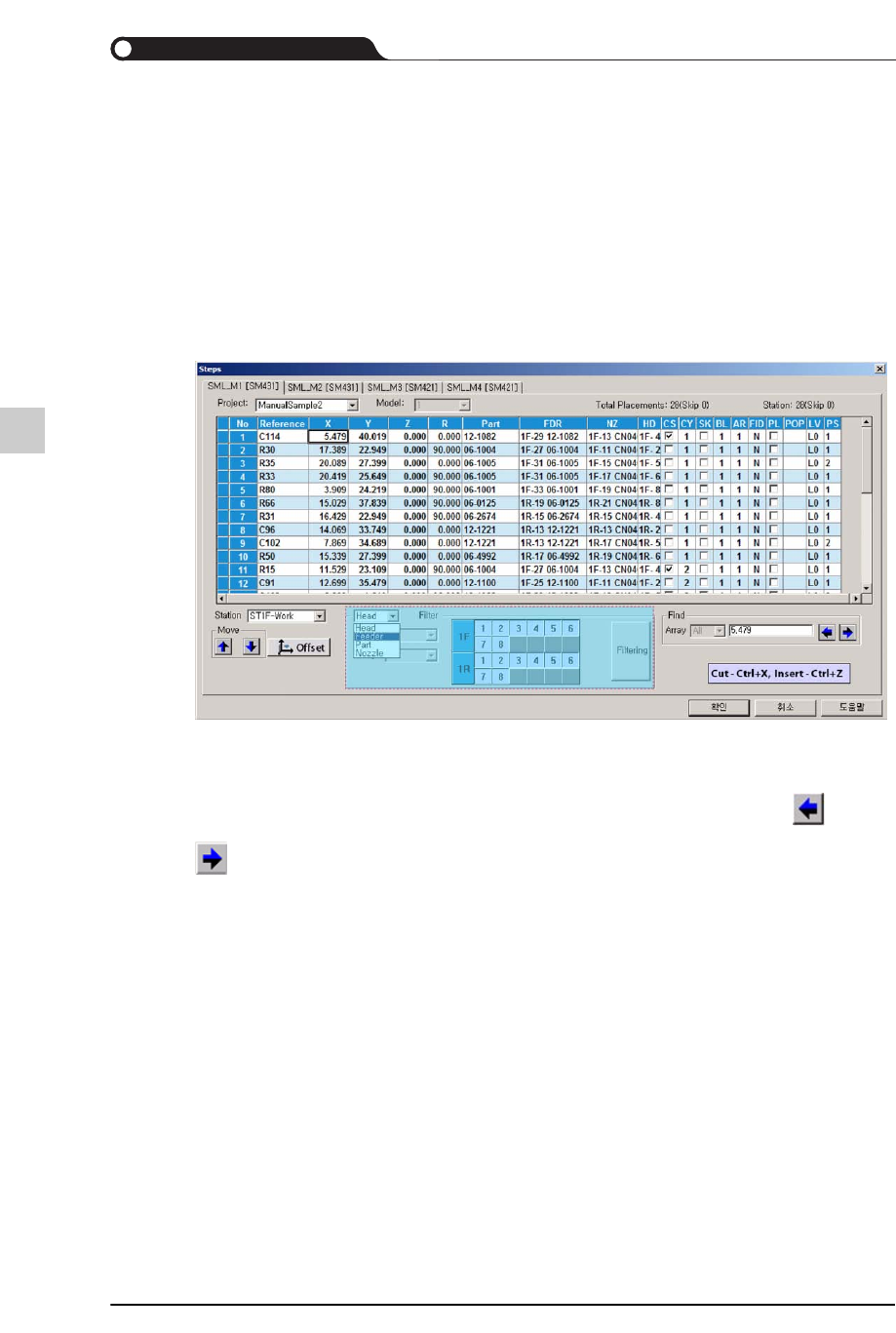 STEP2. 适当地调整X、Y、Z、R值后单击<Update>键。更改后的装贴点数据将反映