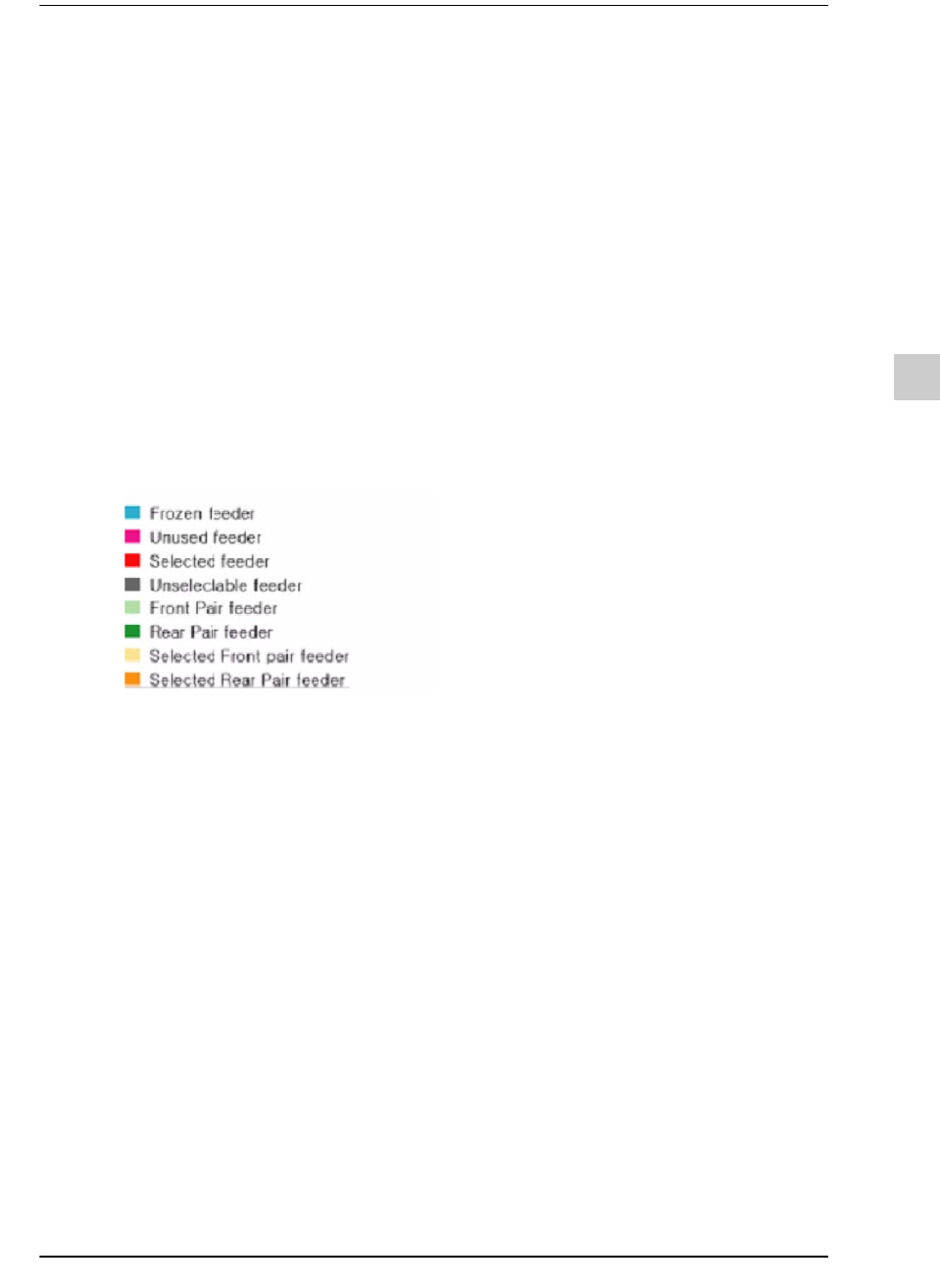 位于图形区的喂料器包括各式各样颜色的喂料器。利用颜色标示的喂料器状态如