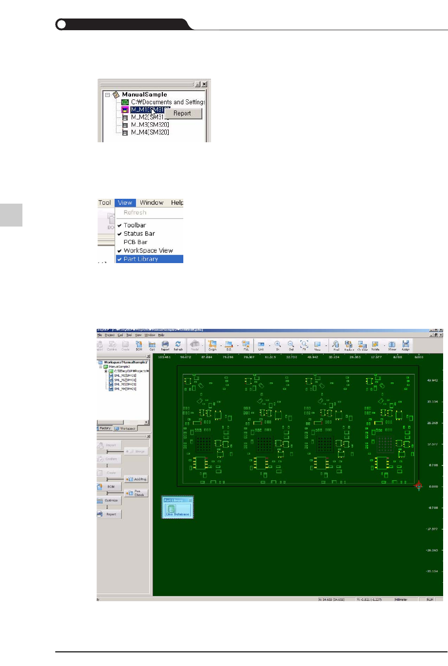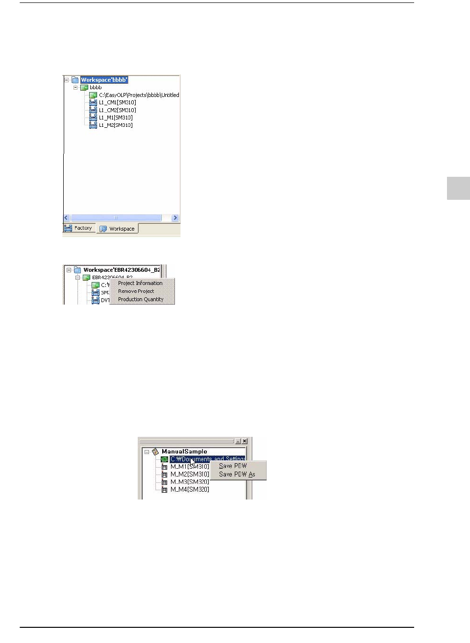 9-135 EasyOLP 9.7.4. WorkSpace View 显示或隐藏屏幕左边的 Factory V iew 与 W orkspace V iew 区。 在 W orkspace V iew 区利用鼠标右键单击项目时, 将下列弹出式菜单。 各菜单的说明如下。 单击 pdw 文件名, 将下列弹出式菜单。 利用鼠标左键单击各设备时, 将在 Board V iew 区里突现出指定给相应设备的元件。 Optimization 进行优…