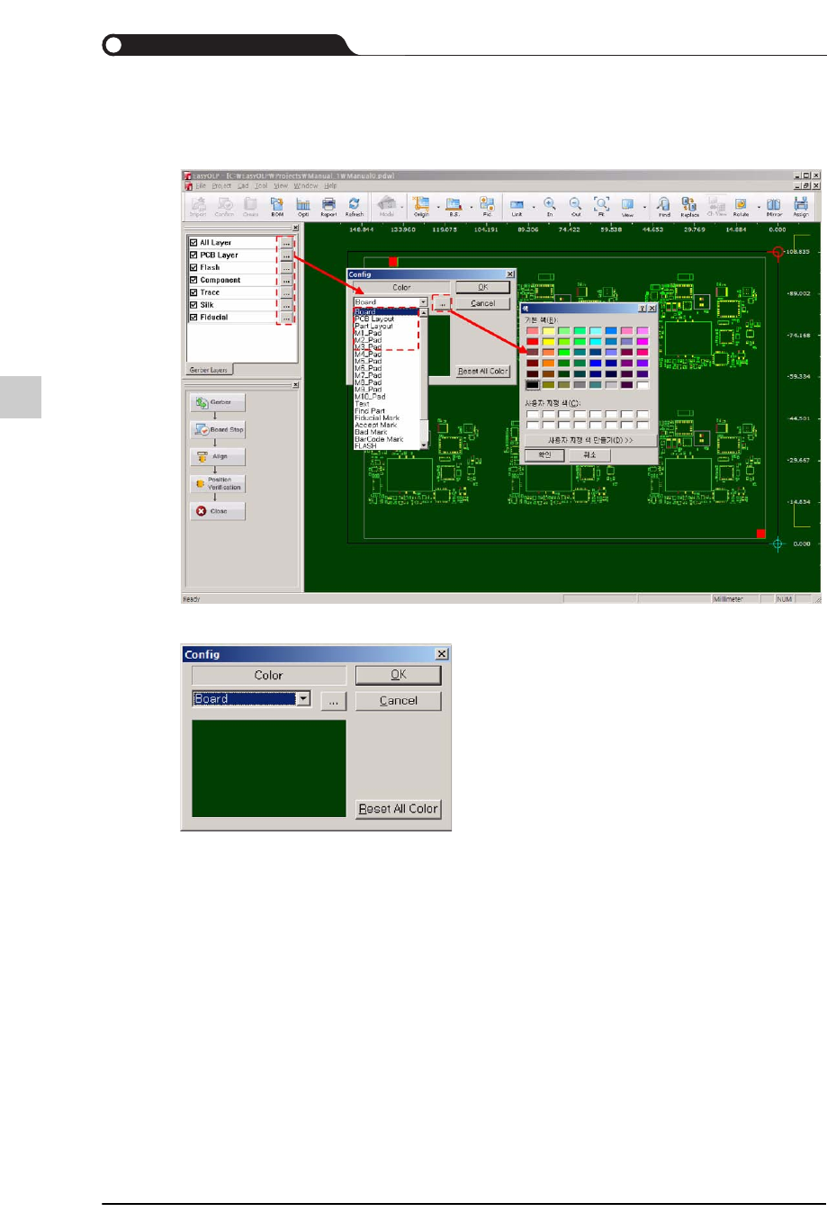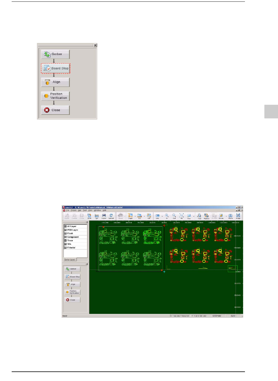 该作业可以大略地使Gerber Layer与 PCB Layer维持一致。单击Board Stop键时会出