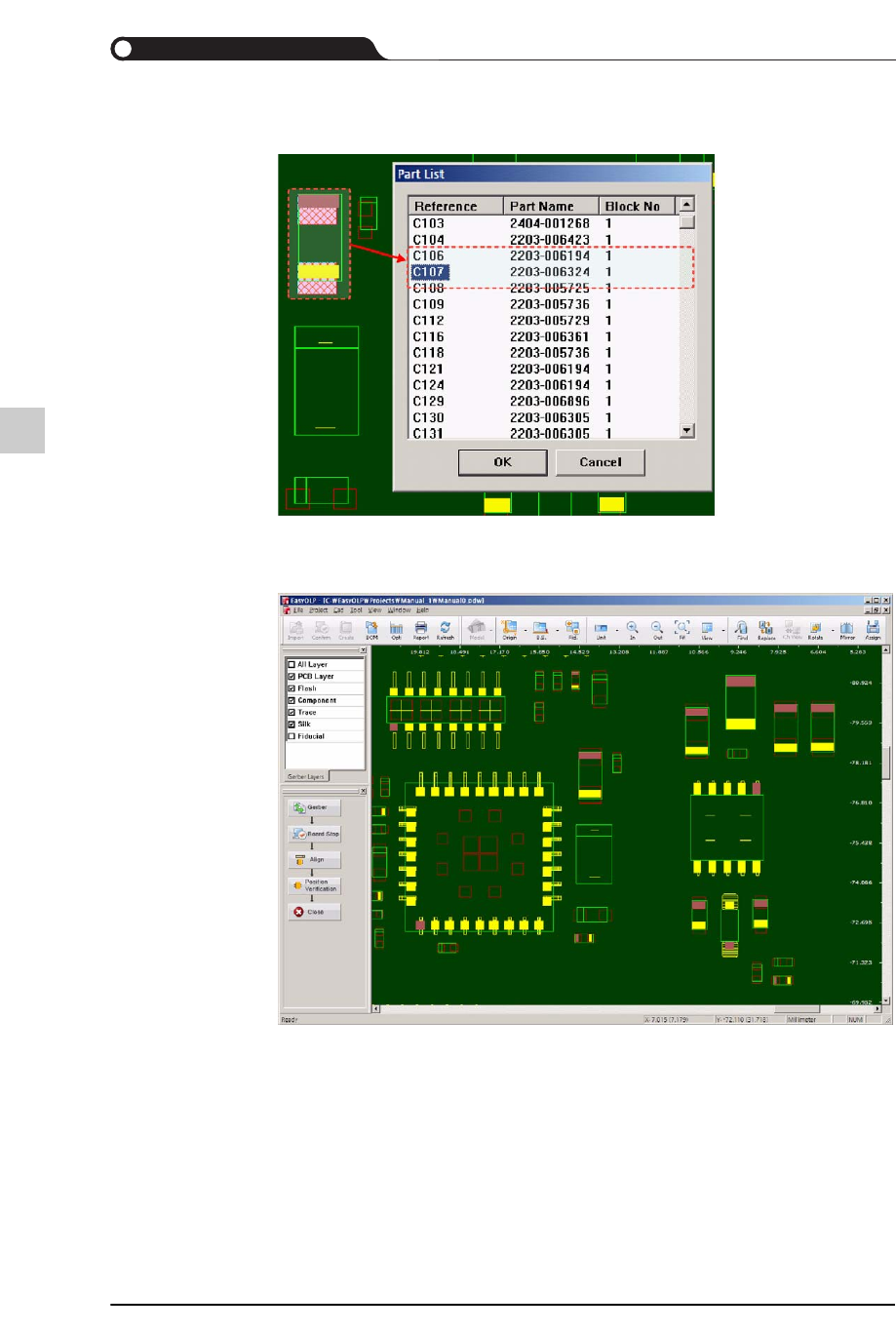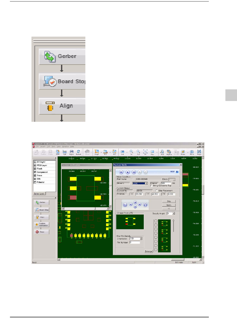 9-151 EasyOLP 9.10.4. Position Verification Figure9.27 Gerver 里的位置验证 该过程讲逐一检查贴装点。 单击 “OK” 键时, 将如下图 弹出 “ 确定设定 ” 窗口、 放大了特定参考点的小窗口。