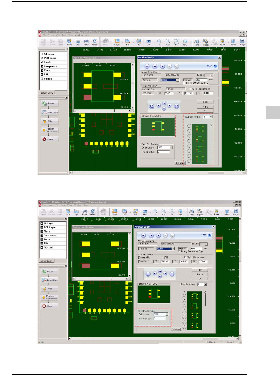9-158 lvswG}] lvswG}] 如果确定元件按照扩展窗口下侧显示 的方式供应则需要修改装贴角度; 即使装贴 角度正确, 如果供应角度错误, 还是需要修改其供应角度与装贴角度。 也就是说, 只有在元件供应角度的输入正确的情形下才能有效地使 用该功能。 注意 如果是非对称 元件, 供应角度输入错误时, 将因为视觉识别失败 而无法在没有修改供应角度的情形 下开始生产 PCB 。但 ,如 果 是 对称元件, 即使供应角度…