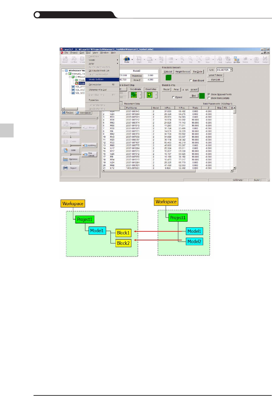 该图形显示了从型号转换到区块的情形。