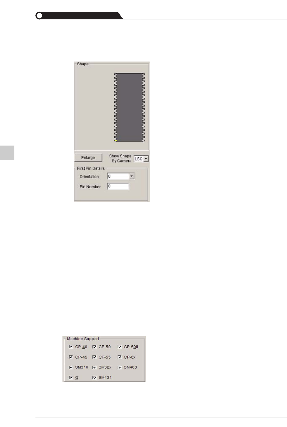 10-60 lvswG}] lvswG}] QFP 等 一般来说, 表示具有 4 个 Lead 群的元件, 大部分的 Chip 元件会显示同一选项。 各细项的说明如下。 10.5.3.14.Machine Supp ort 可以设定支援元件的设备。 大部分的元件可以适用于所有的设备 , 一部分特定元件则只能是用于特定设备。 对 于上述元件, 只有允许适用的设备才能使其设定部位处于激活状态 , 不允许适用的 设备则处于非激…