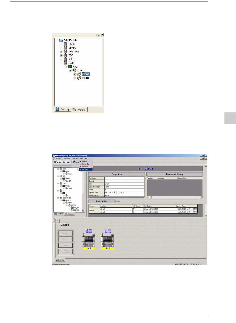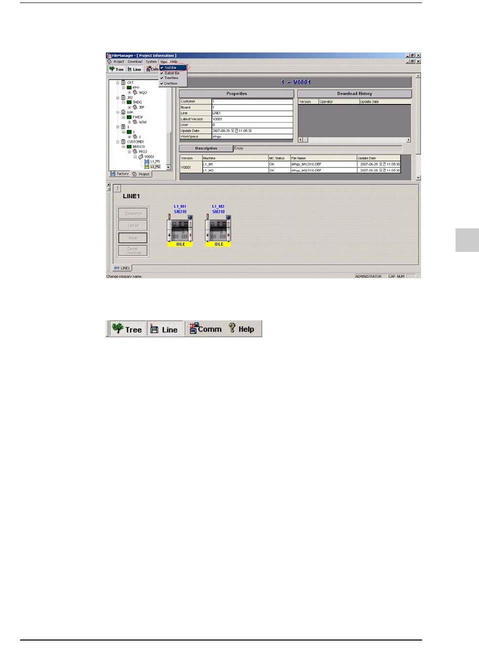 11-14 lvswG}] lvswG}] STEP1. 选择 V iew > Status Bar 菜单。 STEP2. 每次选择 V iew > S tatus Bar 菜单时, 就能切换 File Manager 屏幕的下列状态 条的显示 / 隐藏状态。 11.4.3. Tree View 可以显示或隐藏项目结构的树状视图 (T ree V iew) 区。 STEP1. 选择 V iew > Tree…