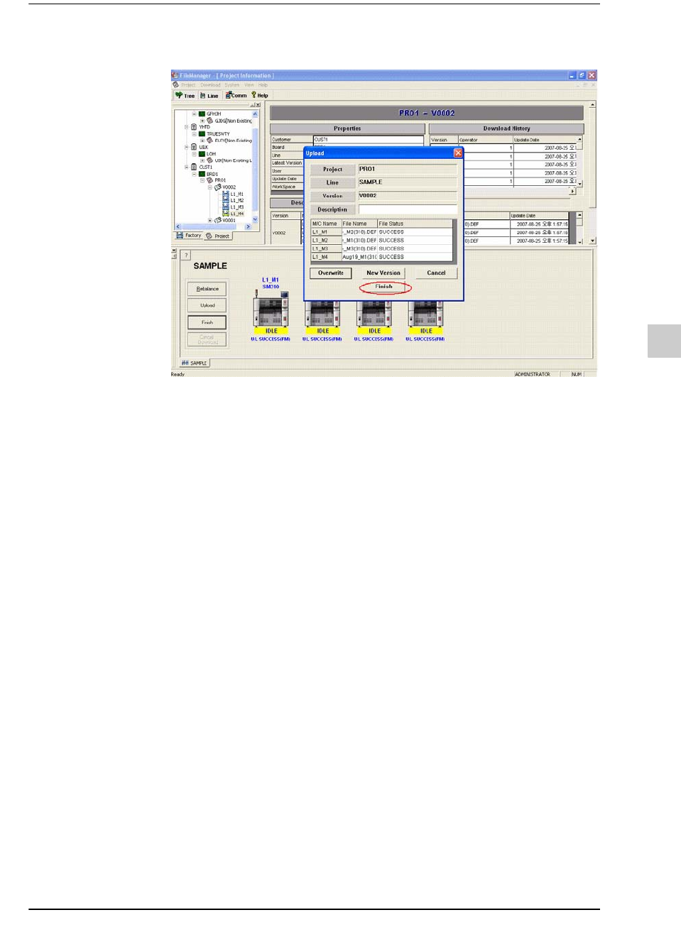 STEP1. 单击<Finish>键时,将出现包含<Cancel>键、<Finish>键及Overwrite与New