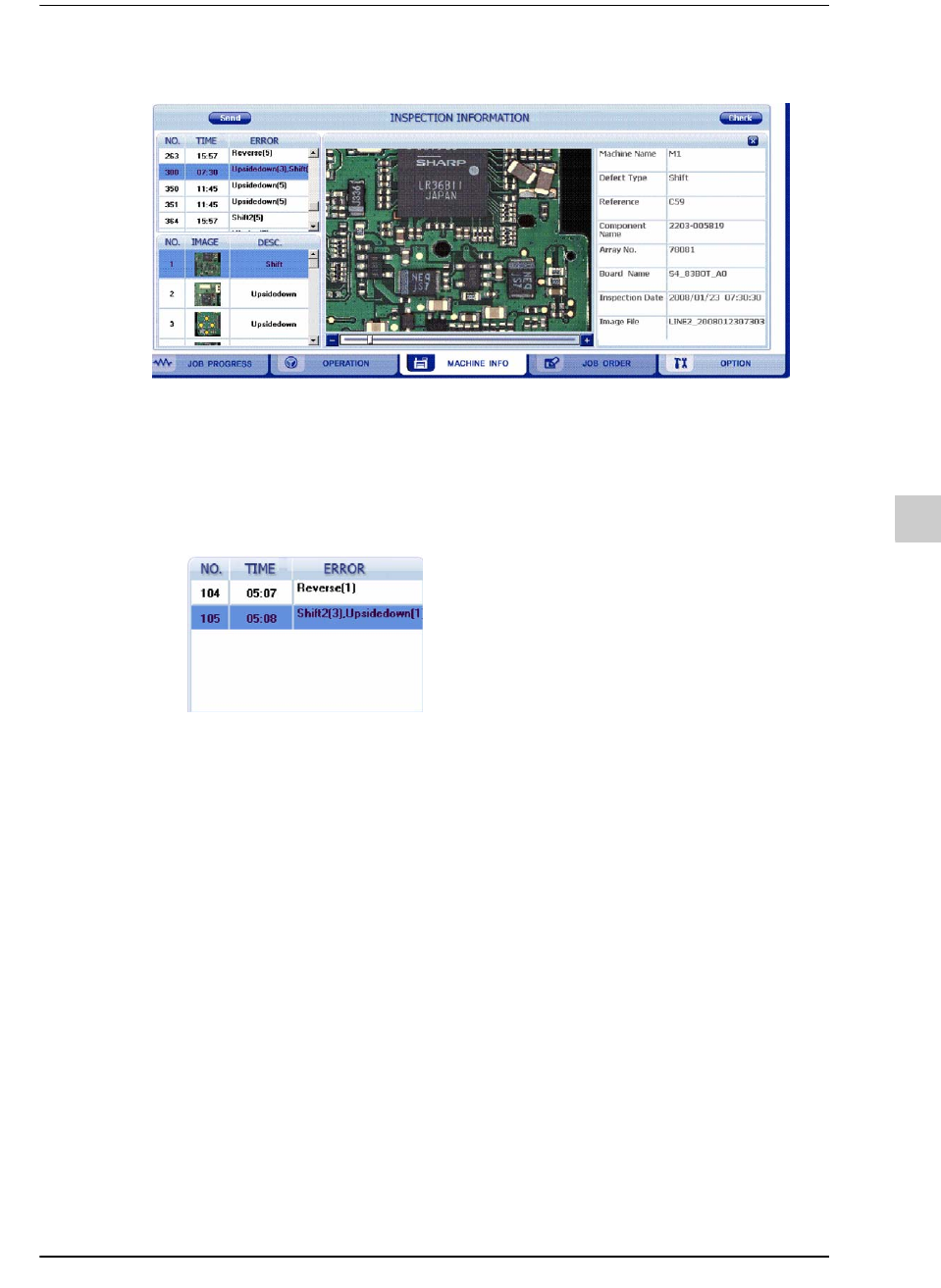 3) 发生不良时将在画面上显示出发生不良的电路板信息。Error Board上显示的