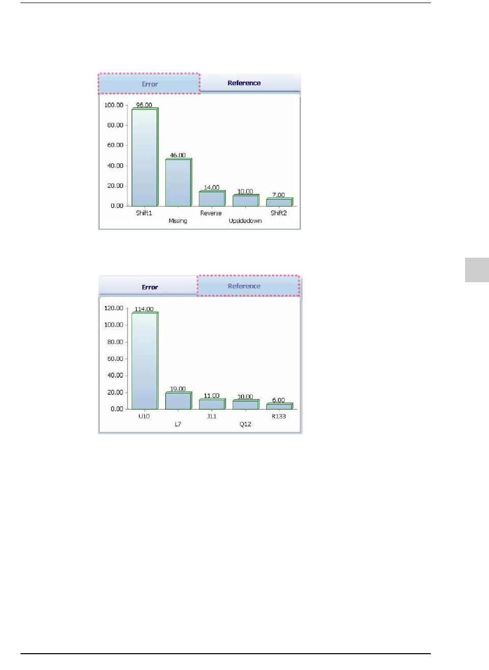 下图按照发生不良最多的Reference显示了5种 Error的条状(bar)图。